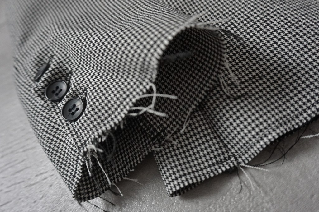 また、袖口と裾部分のみ切りっぱなしにしているので真面目にかしこまる印象も軽減。ビジカジでもいけるギリのラインではないでしょうか?上の写真的にもほつれはほとんど目立たないですよね。