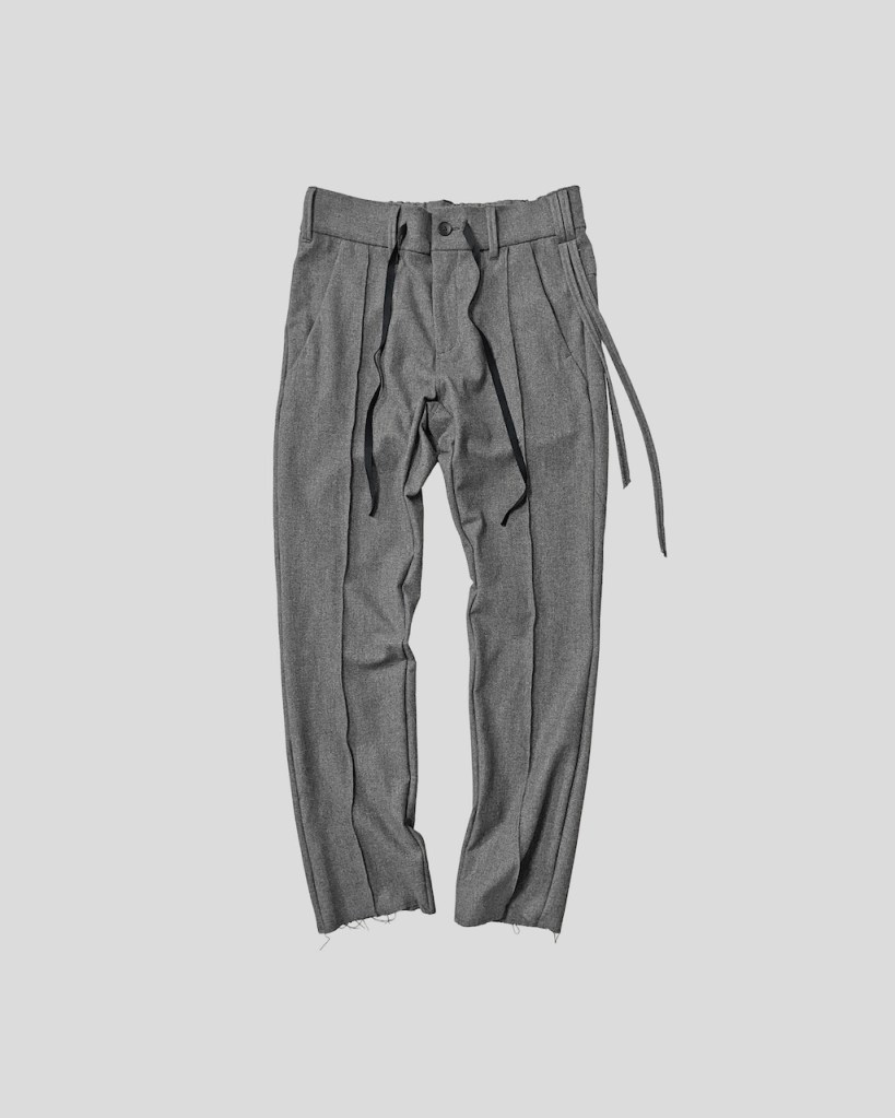 パンツの場合はさらに効力が増し、視覚的にも脚長効果がございます。ウエストはドローコード付きであくまでもイージーに履ける範疇をキープ。