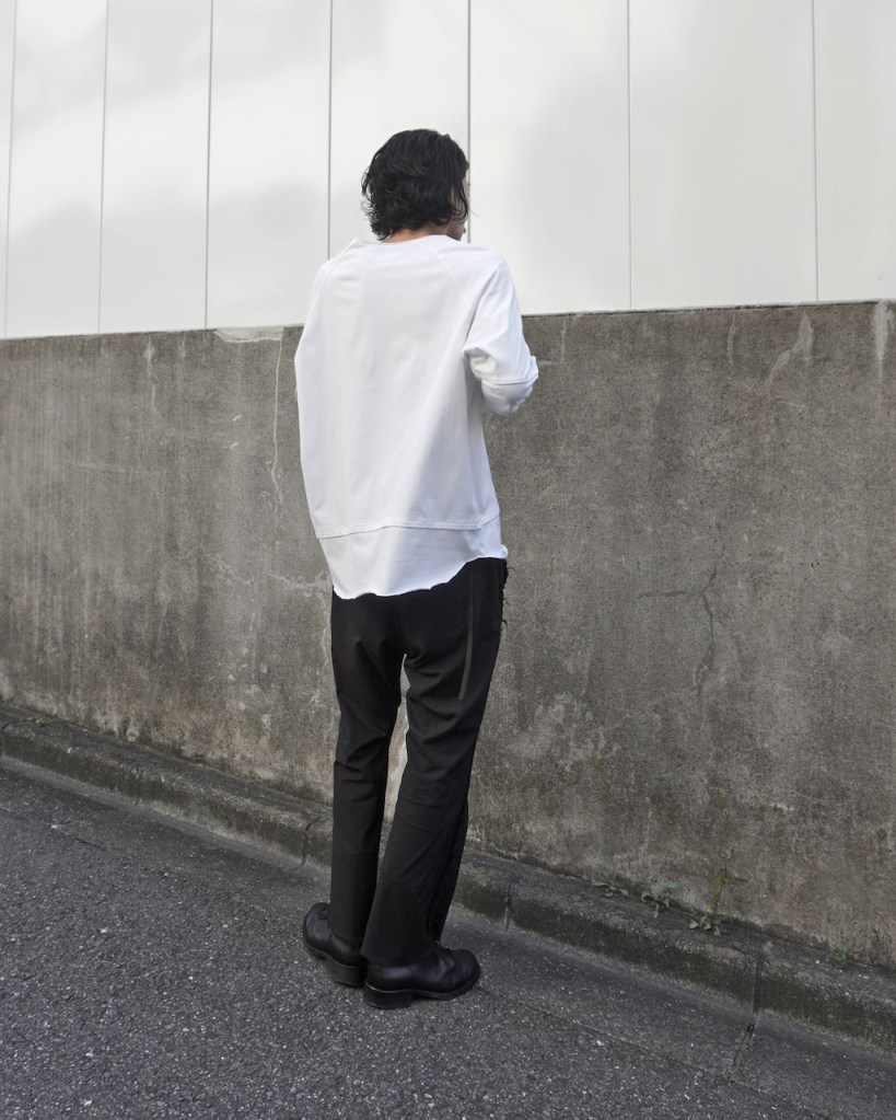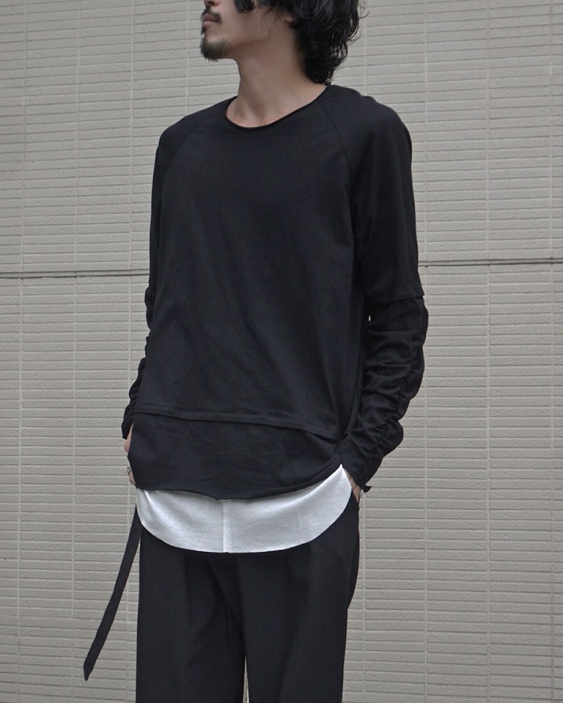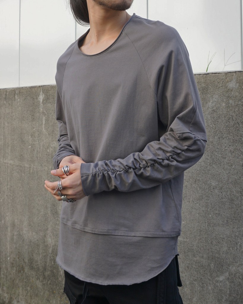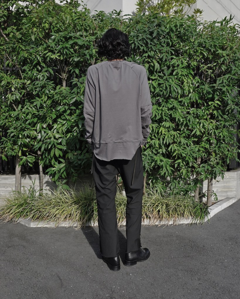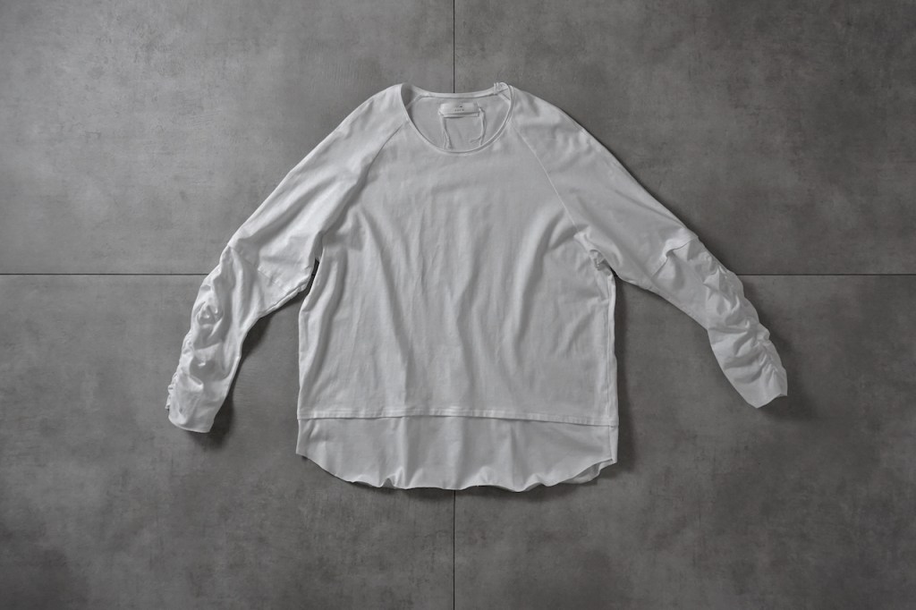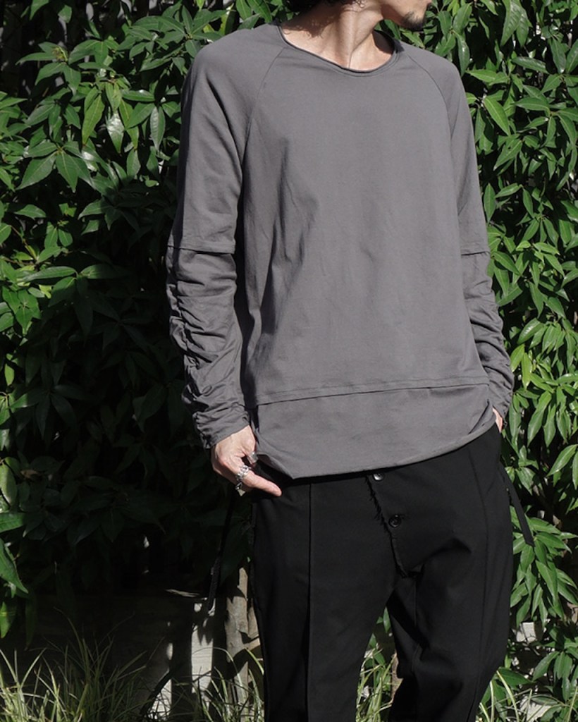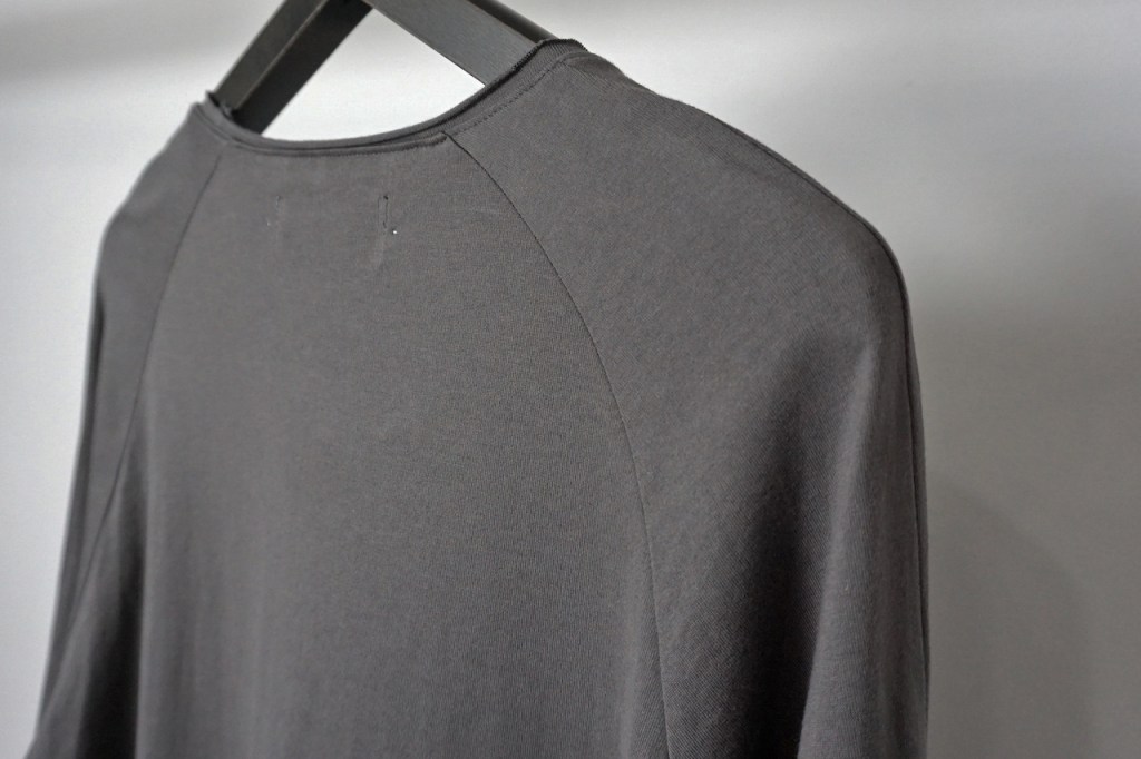 簡単にいうとクセのないオールマイティな素材です。「THE ロンT」っていう表現が適正かはわかりませんが、やや薄手でシーズンを問わない厚み。光沢も抑えててカジュアルからモード、ストリートまでスタイルを問わないかと思います。デザイン性が割と強めなので素材はニュートラルかつベーシックなものにしたかったんです。