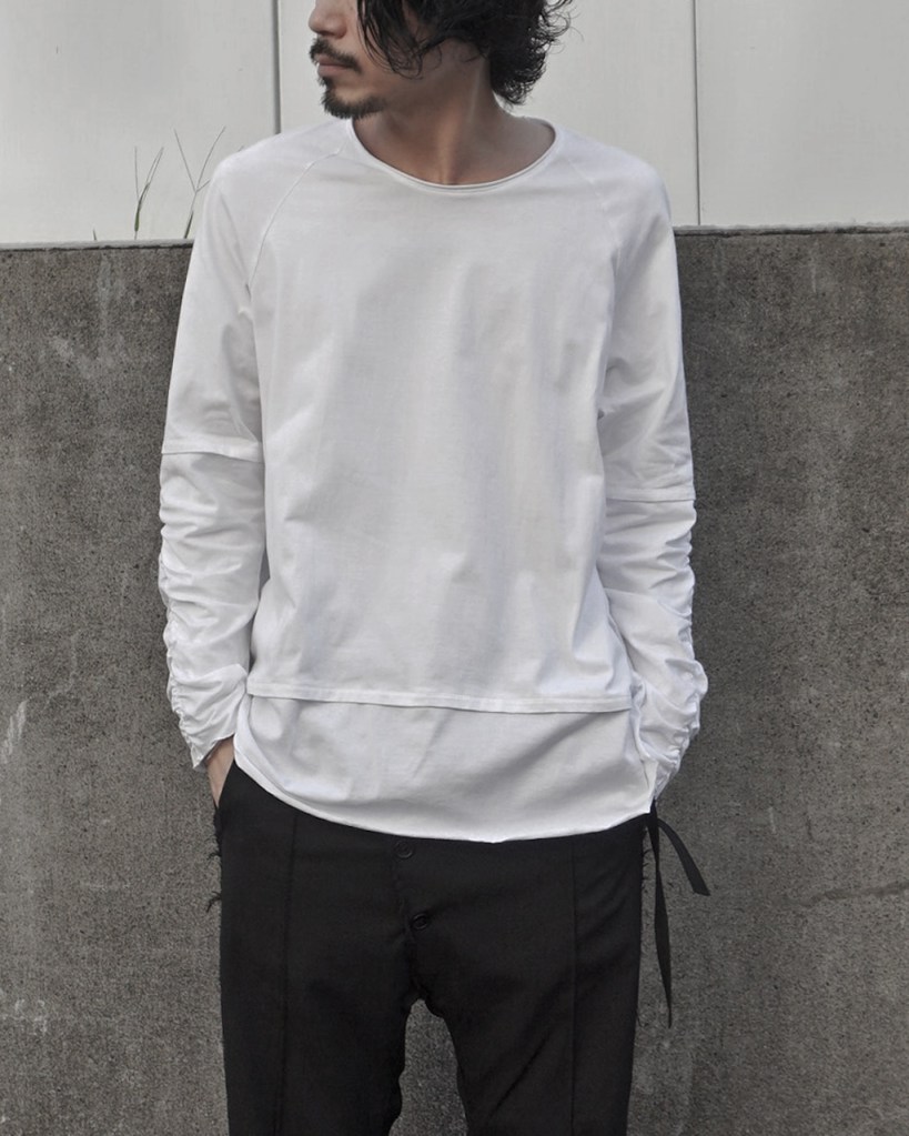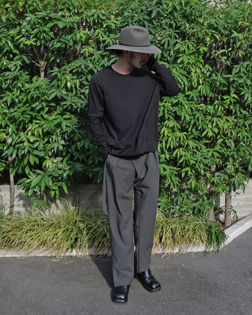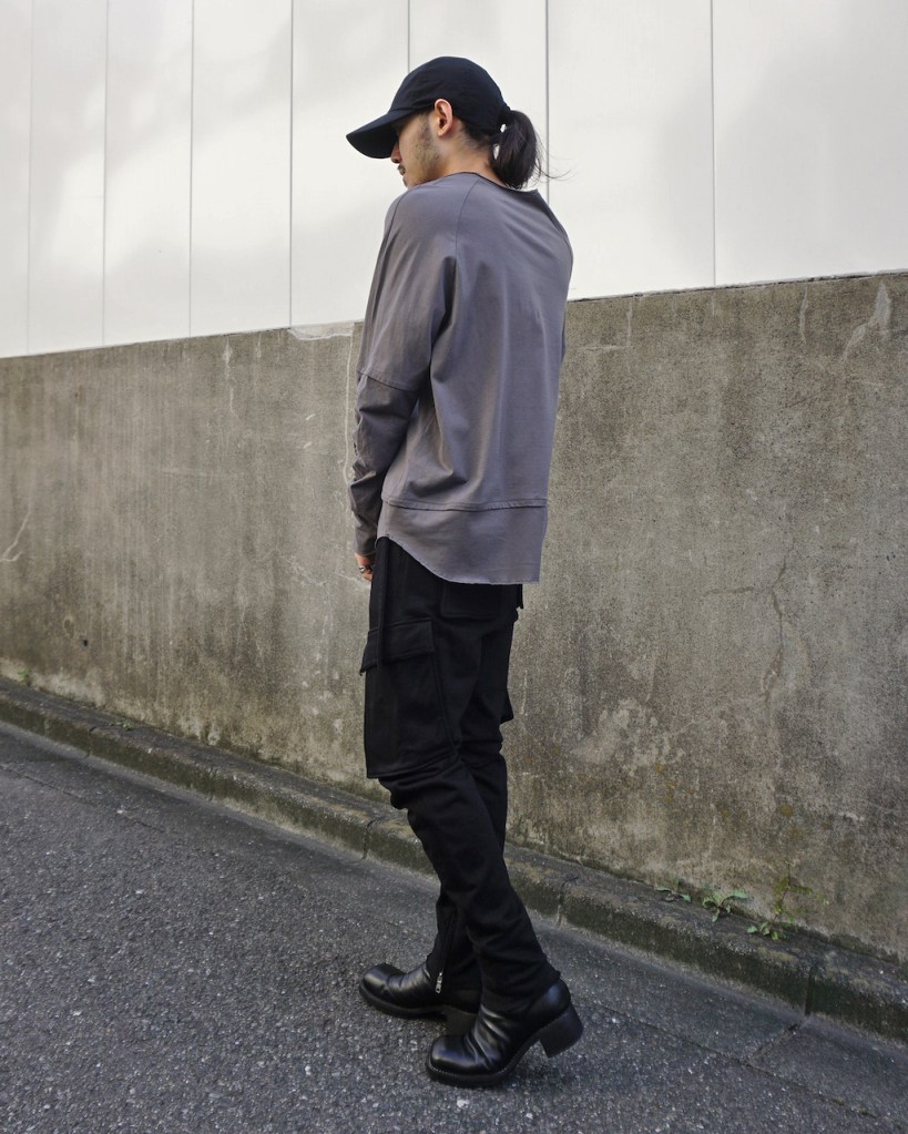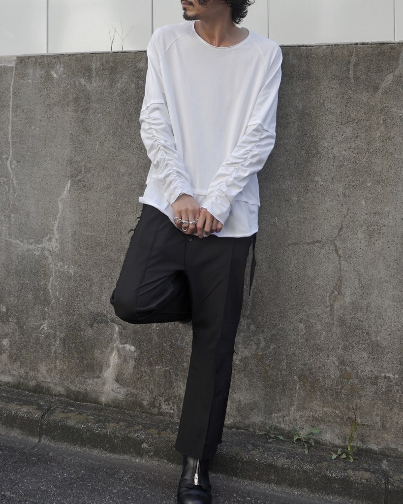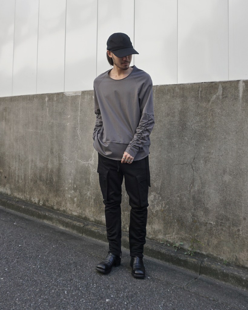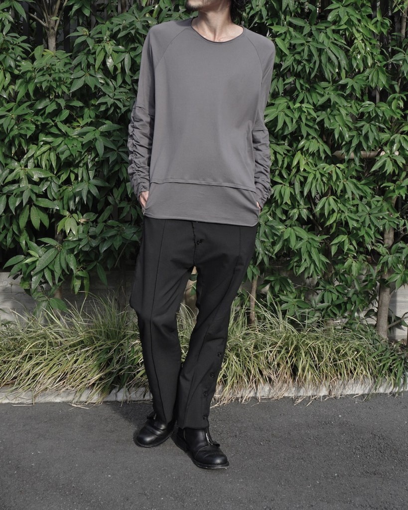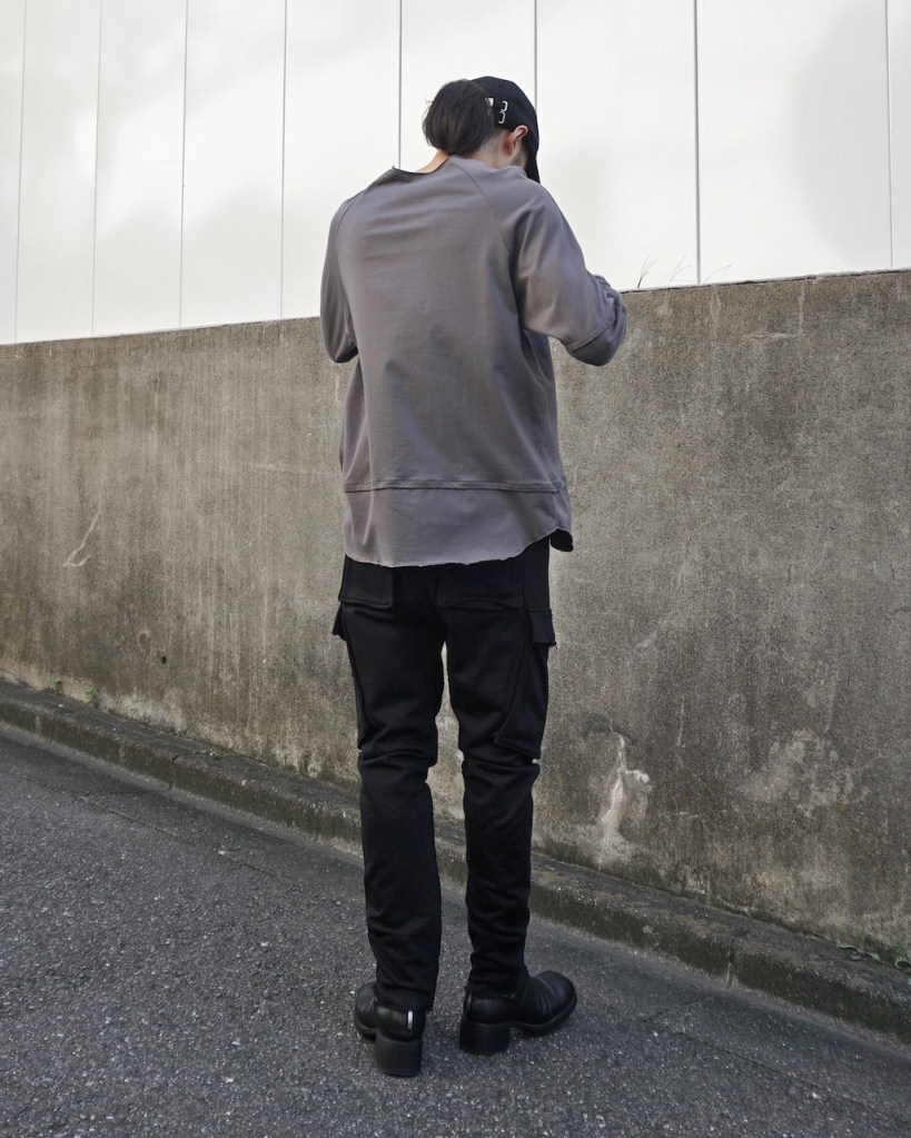 簡単にいうとクセのないオールマイティな素材です。「THE ロンT」っていう表現が適正かはわかりませんが、やや薄手でシーズンを問わない厚み。光沢も抑えててカジュアルからモード、ストリートまでスタイルを問わないかと思います。デザイン性が割と強めなので素材はニュートラルかつベーシックなものにしたかったんです。