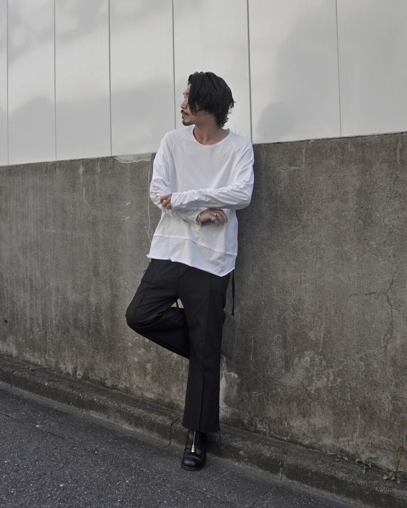 1枚でも透け感はそこまで気になりませんが、もし気になられるお客様はインナーにタンクをご着用ください。僕は1枚でも全然平気なのでそのまま着用します。白インナー、これからの時期外せないですよね。うちとしてもロンTって毎回久しぶりのリリースになりがちのでこの辺でアップデートも良いかと思います。