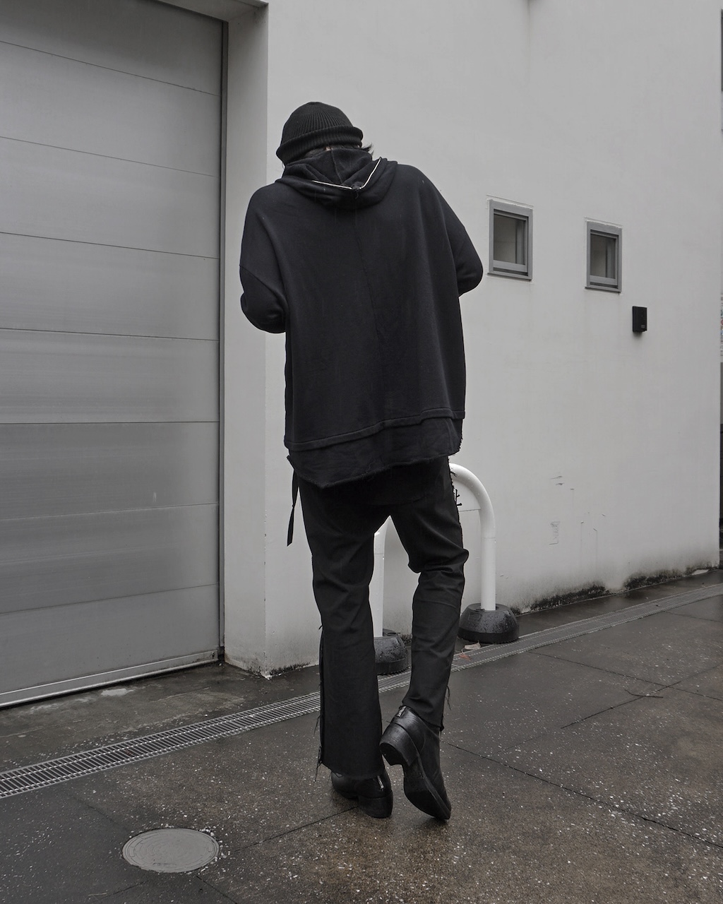 おもいっきりルーズに落とし込むか、細身のパンツでスッキリ見せて緩急をつけるか。トップスにゆとりあるのでいずれも綺麗めなスラックスでコントラストをつけるのがASKYY流の解釈となるでしょうか