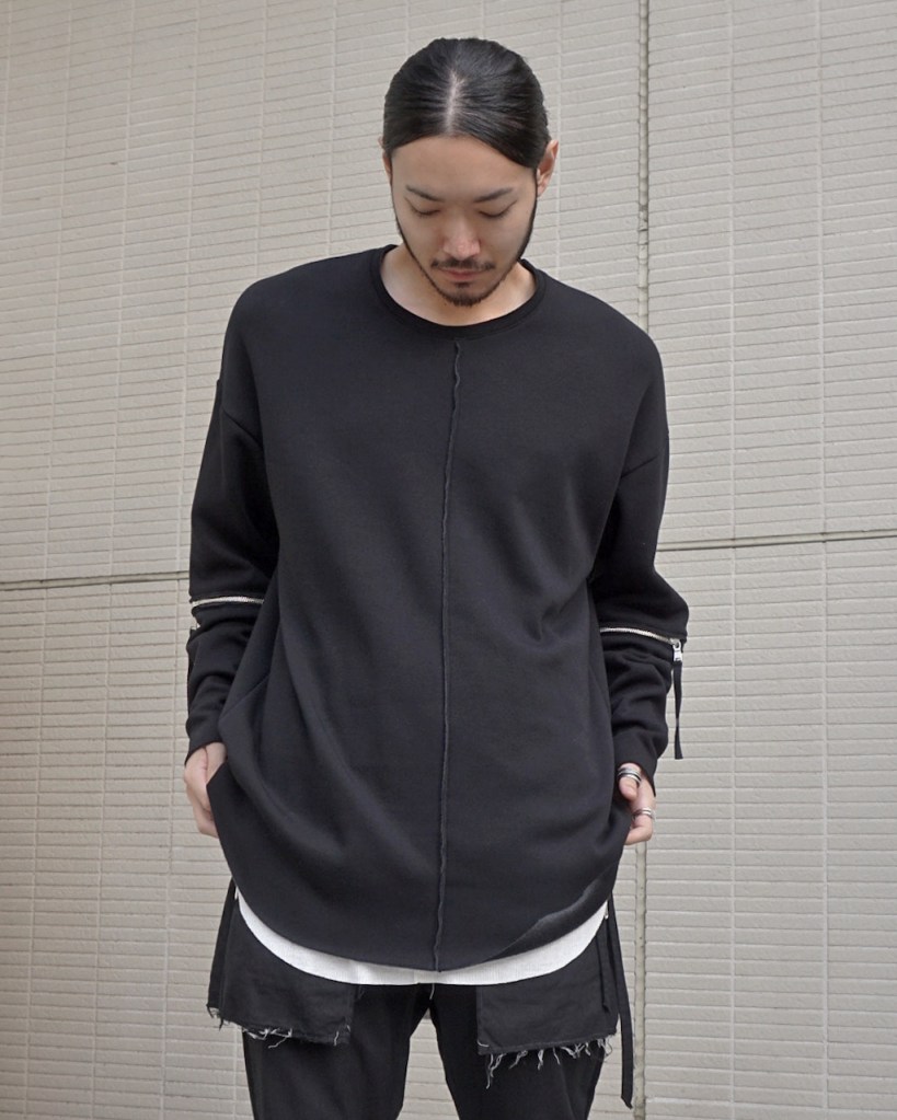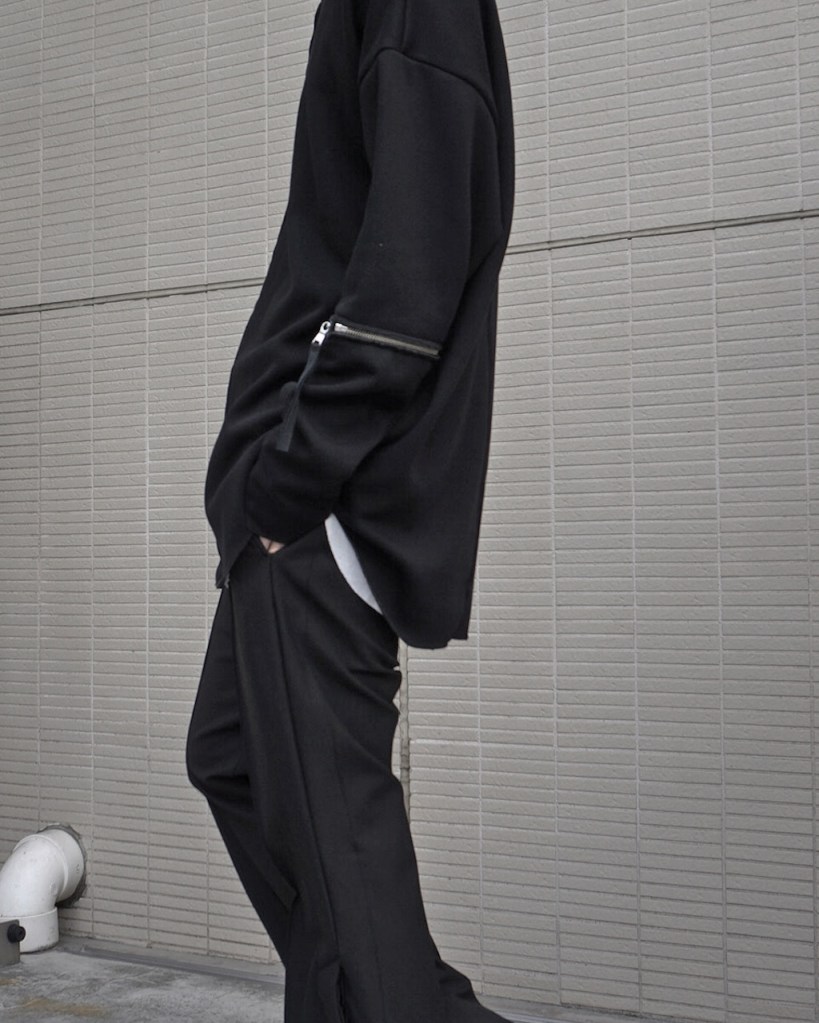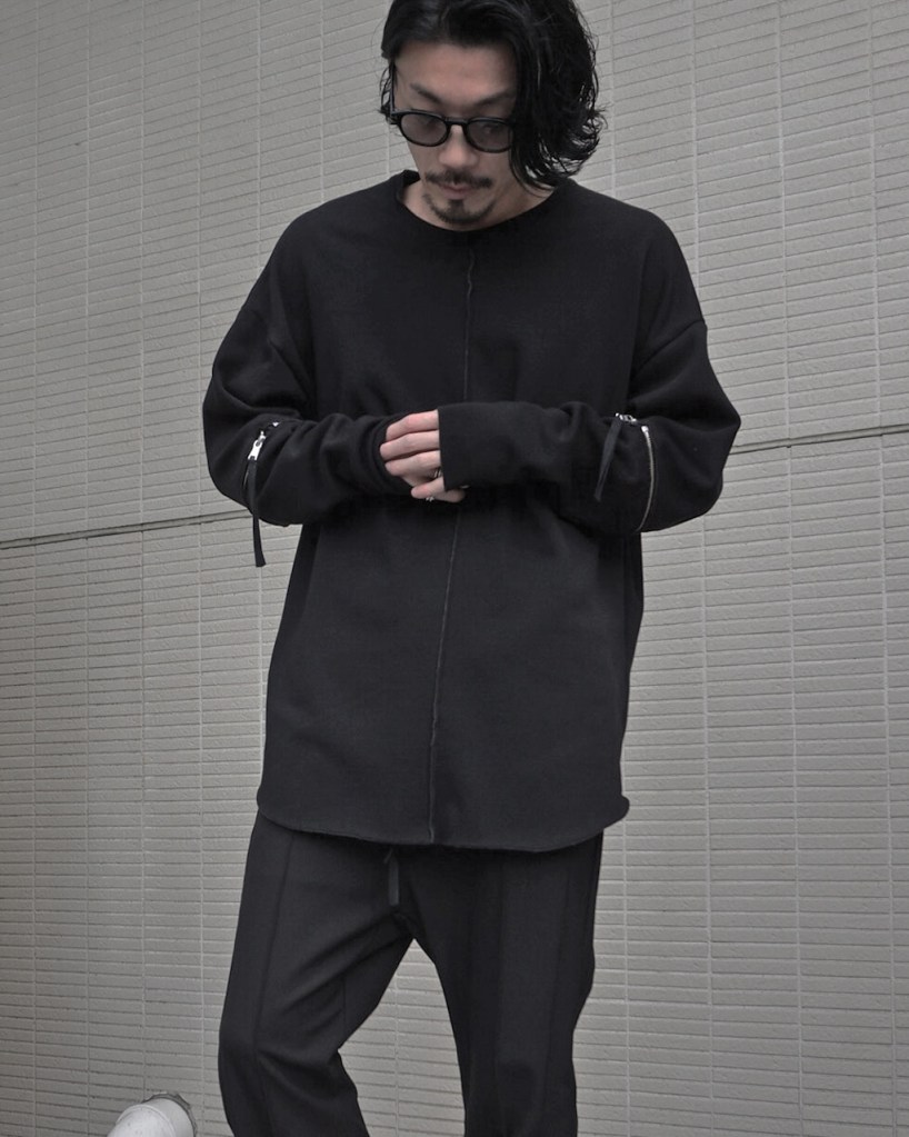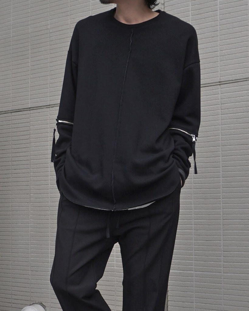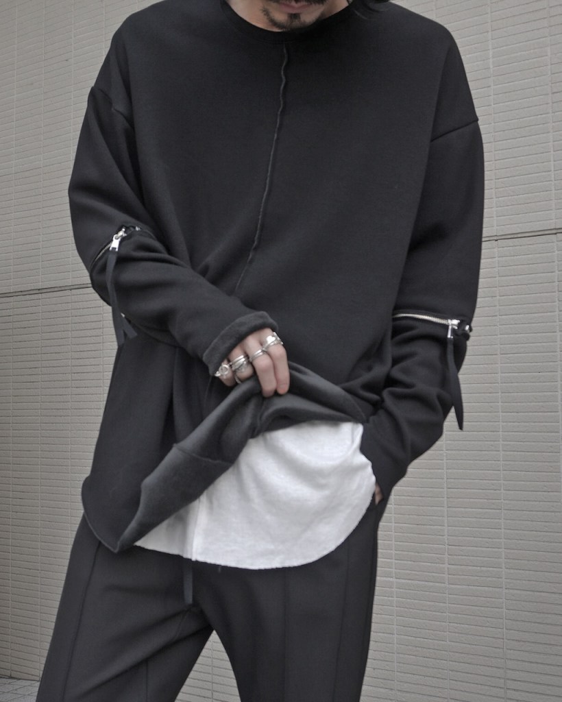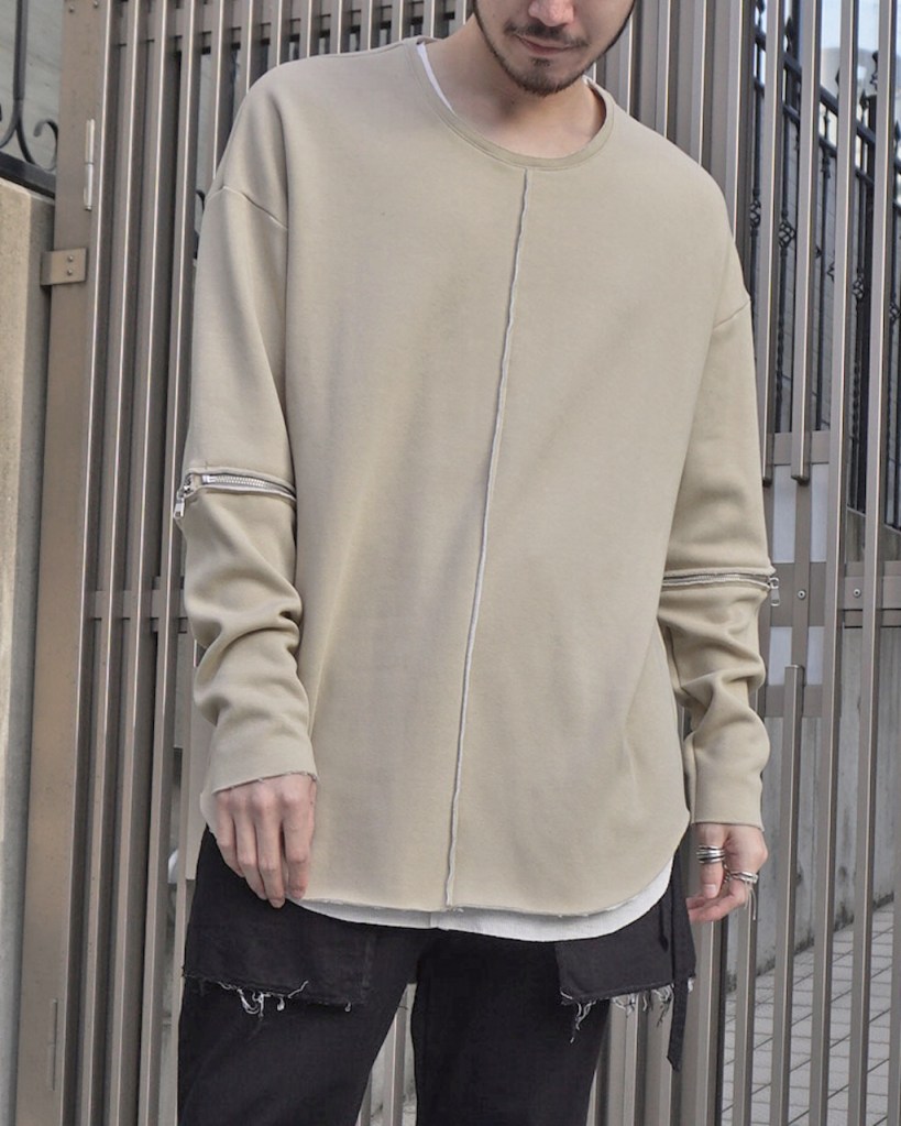 脱力感あるフォルムに対して袖についた無機質なジップのコントラスト。