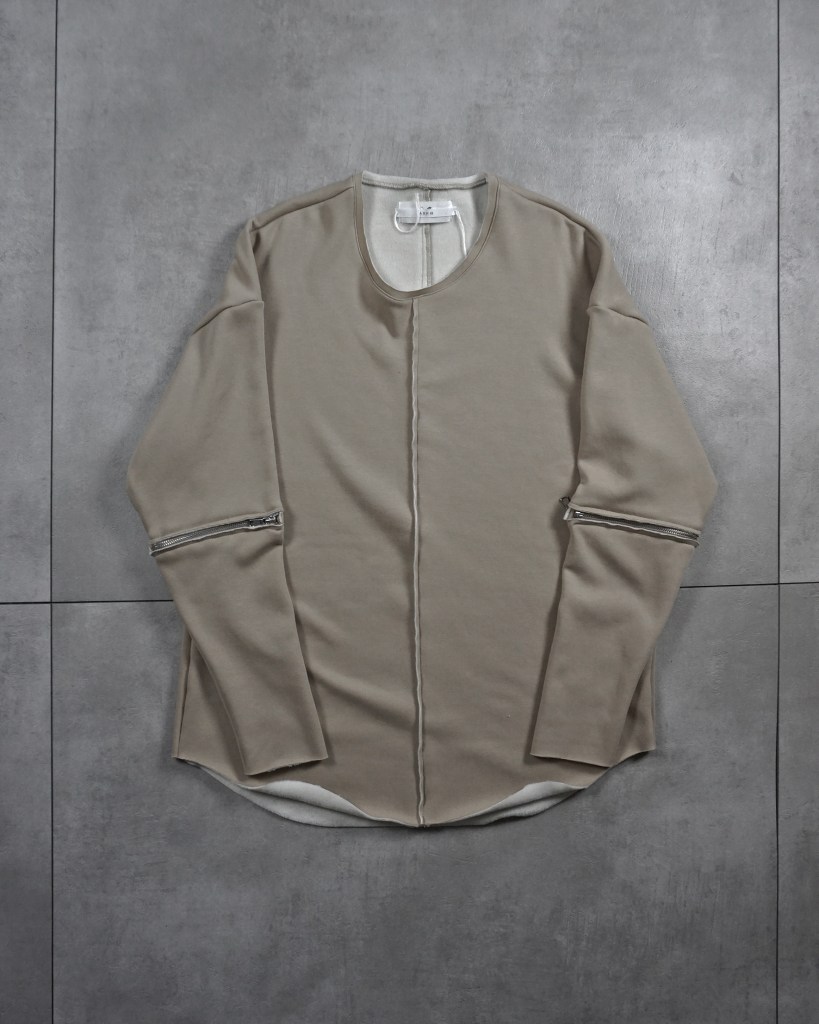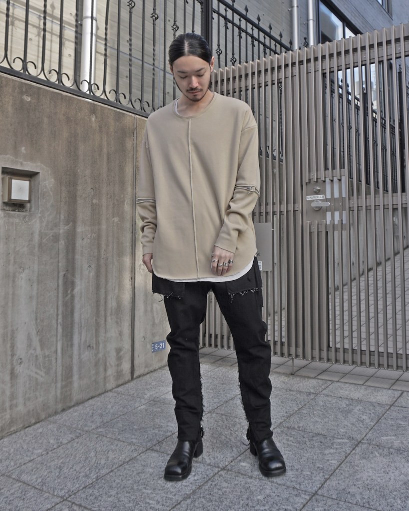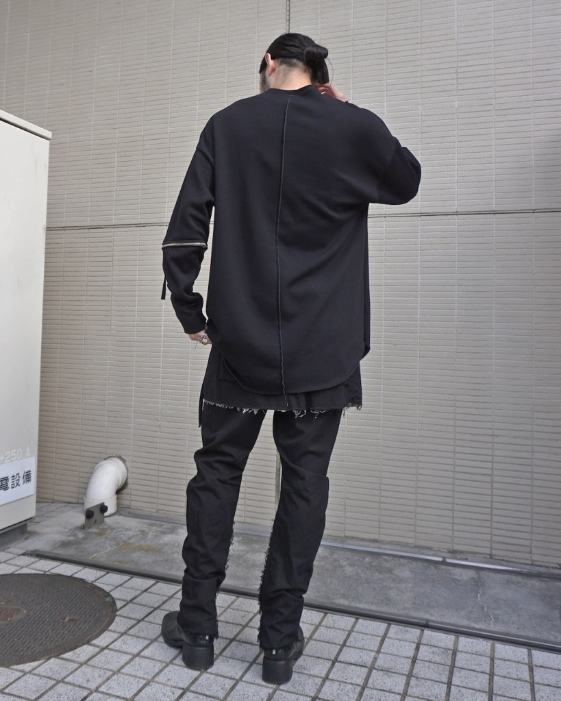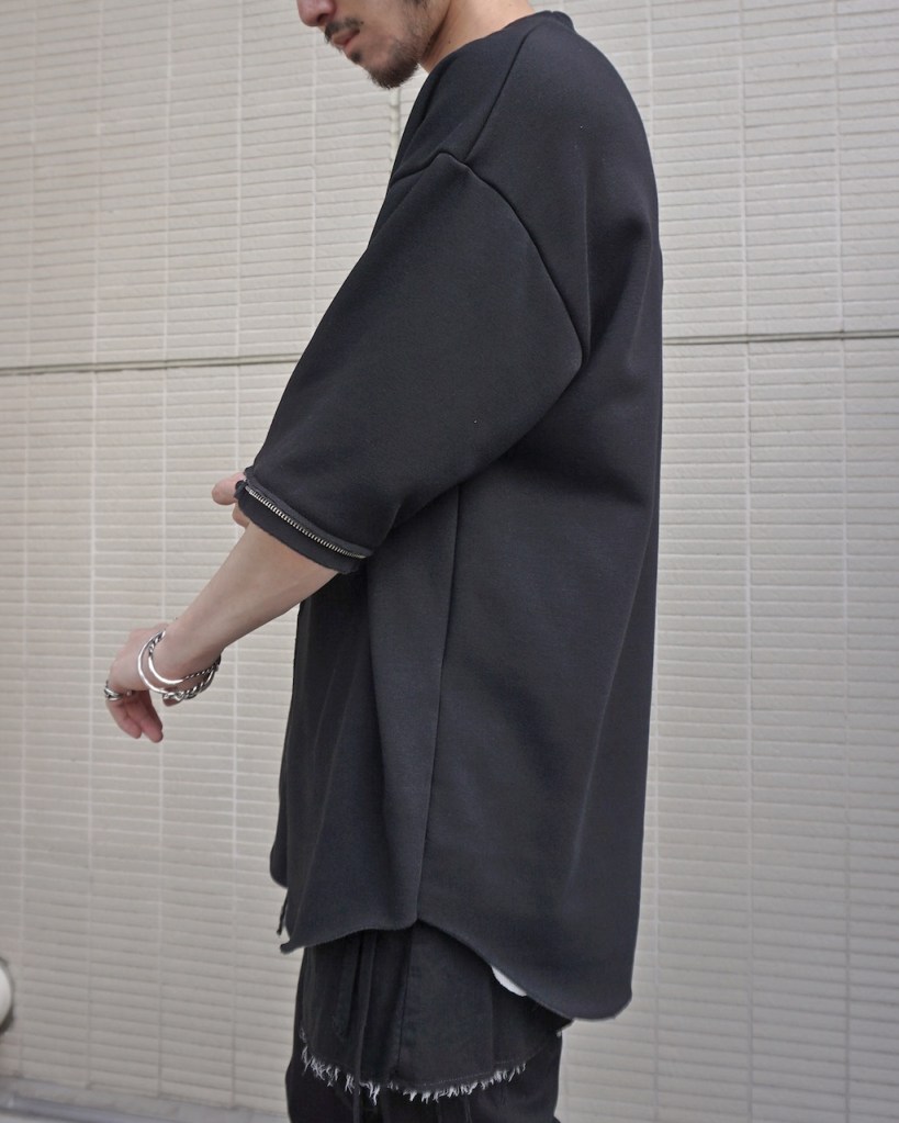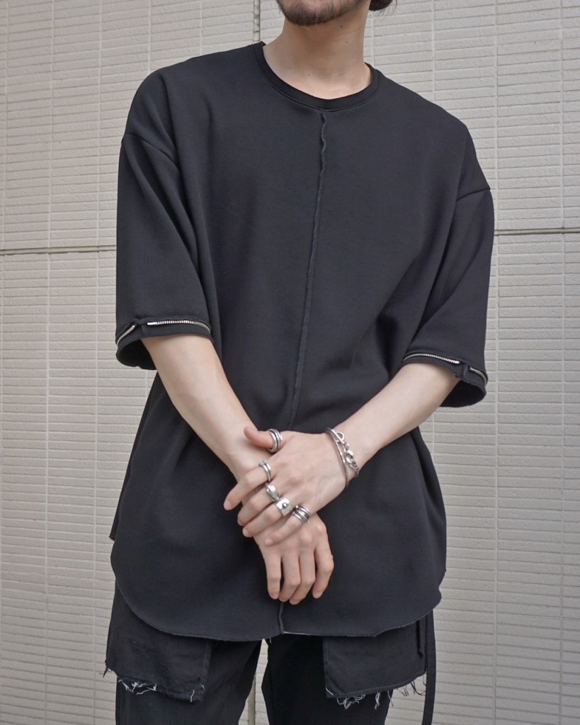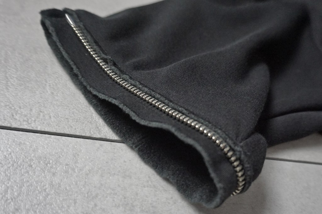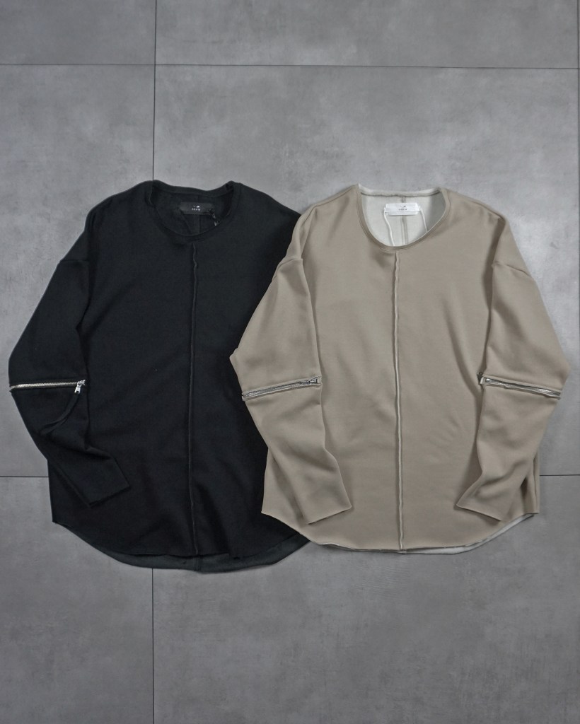 脱力感あるフォルムに対して袖についた無機質なジップのコントラスト。