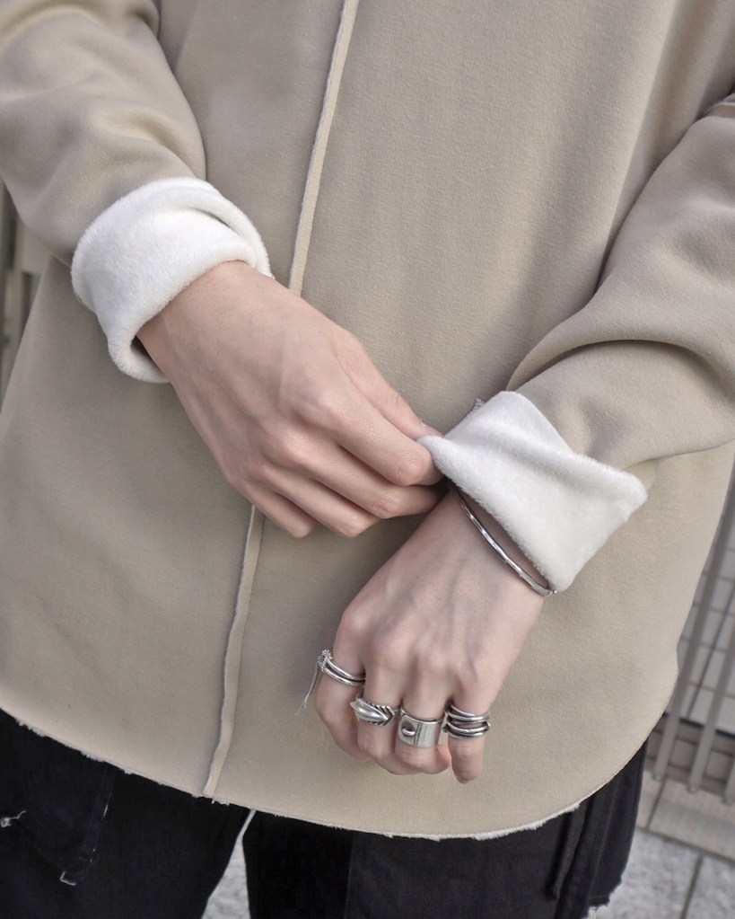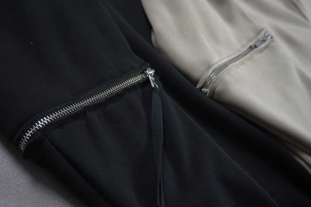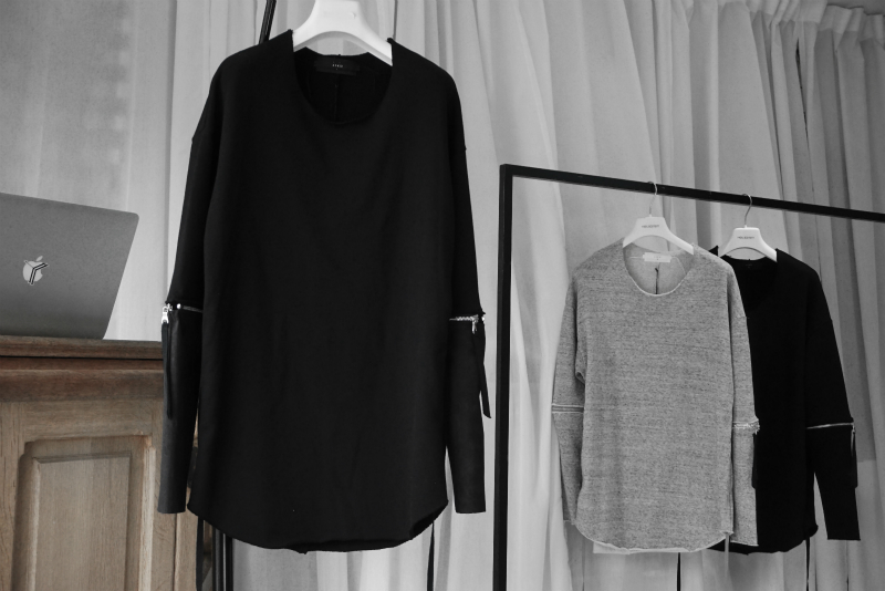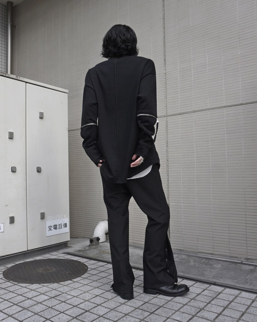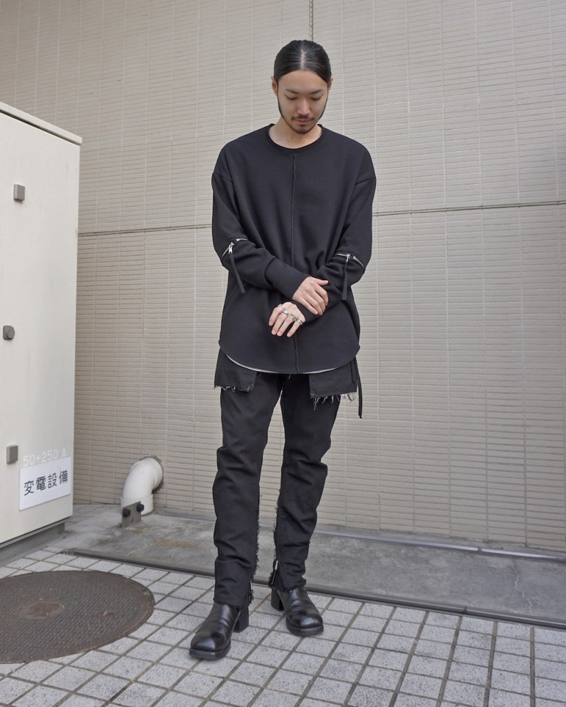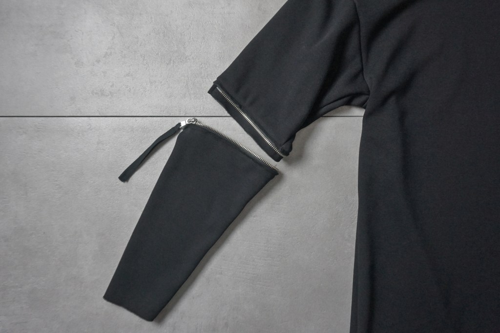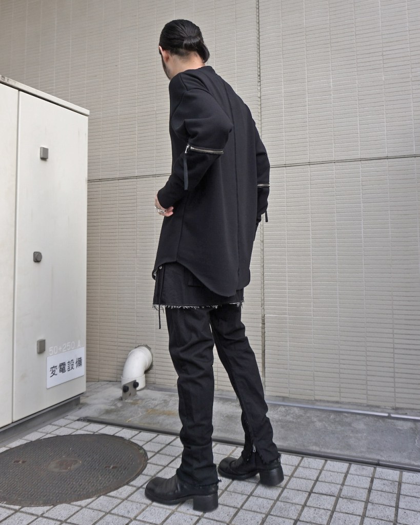 脱力感あるフォルムに対して袖についた無機質なジップのコントラスト。