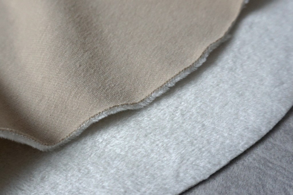 表面はスウェットのようにマットな質感ながら、裏面はベロアタッチでとにかく気持ちがいい。