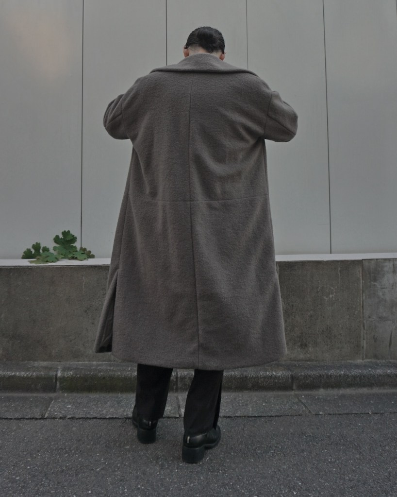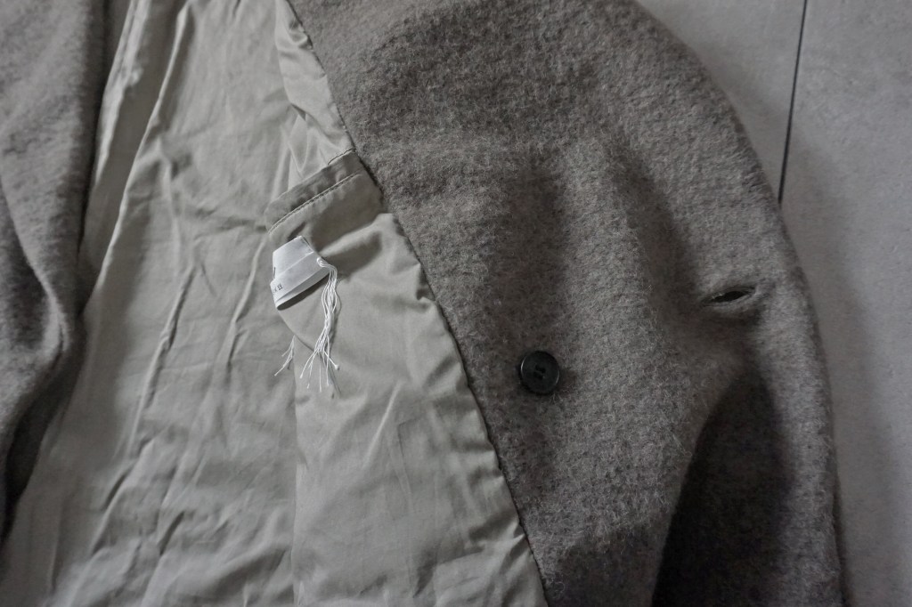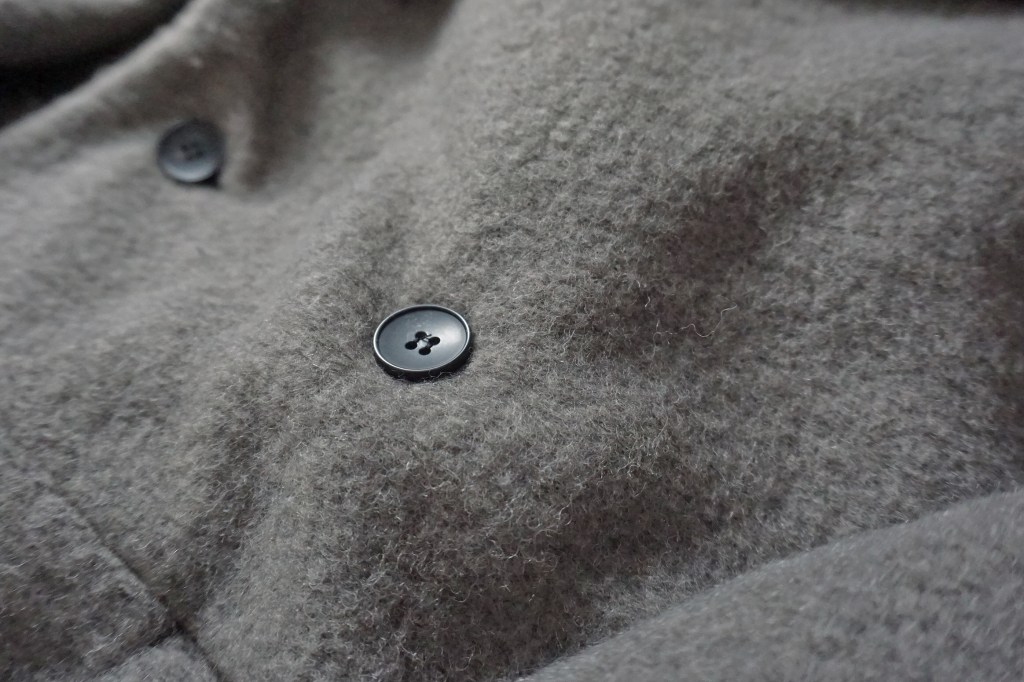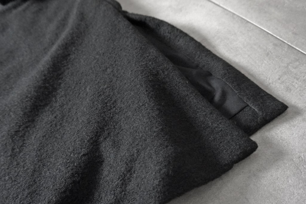 これが例えばメルトン系のハードな質感ですとまた全然違う印象になってしまいますのでこの素材ありきの形かと思います。