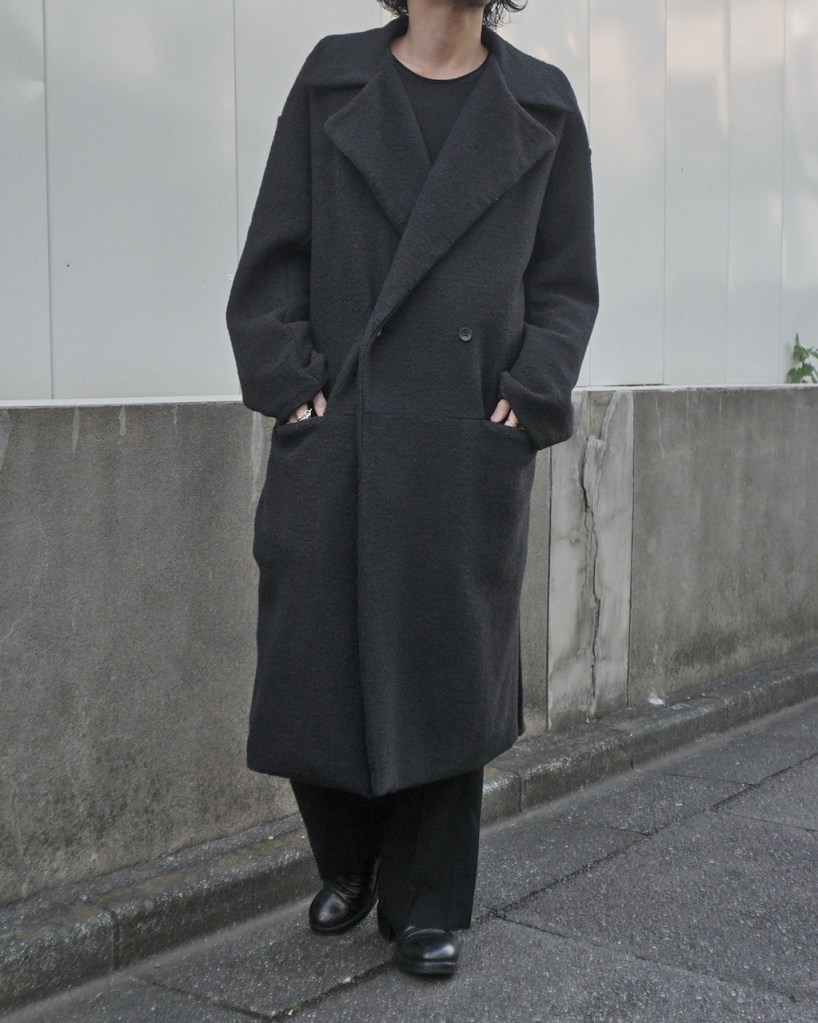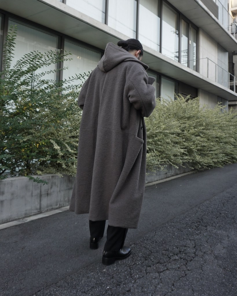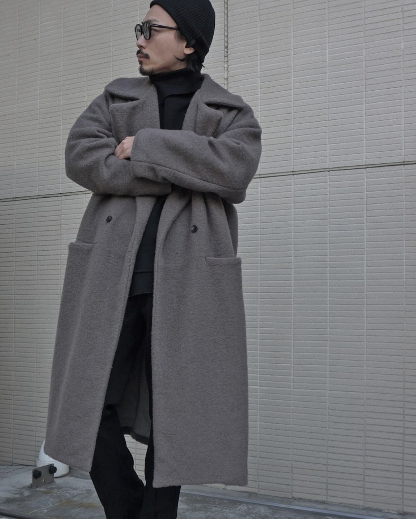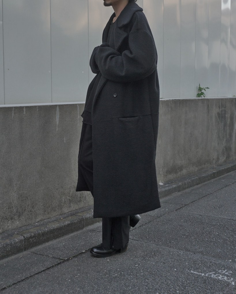 これが例えばメルトン系のハードな質感ですとまた全然違う印象になってしまいますのでこの素材ありきの形かと思います。