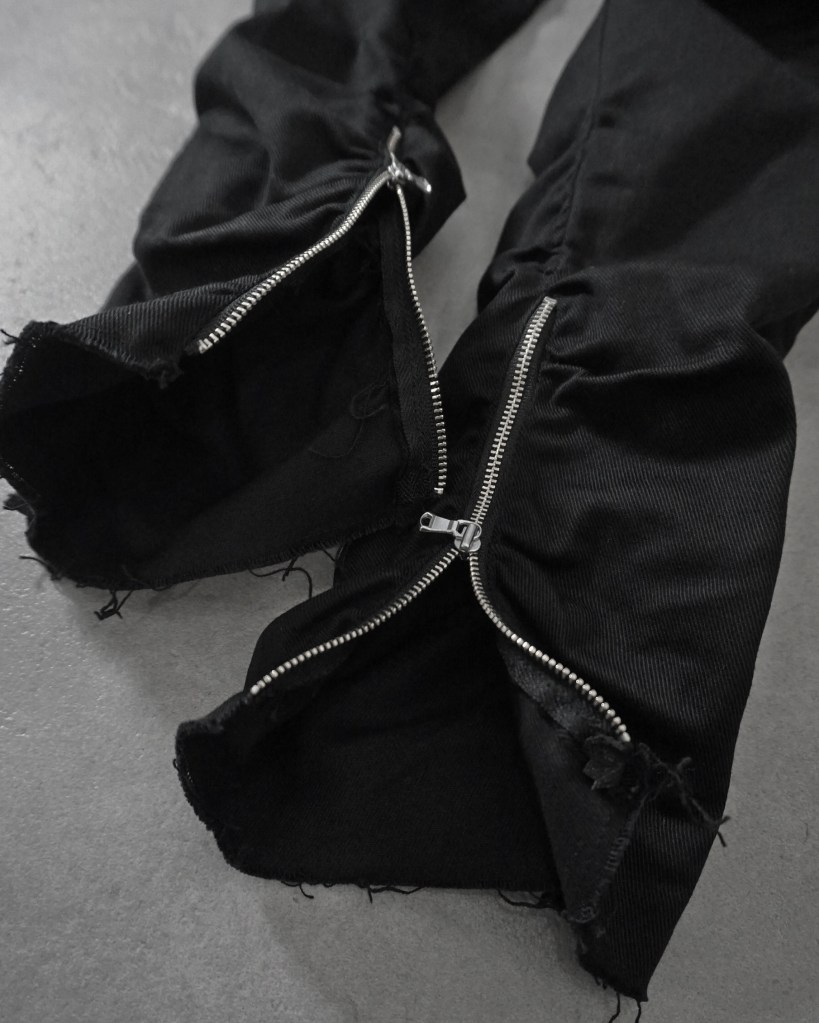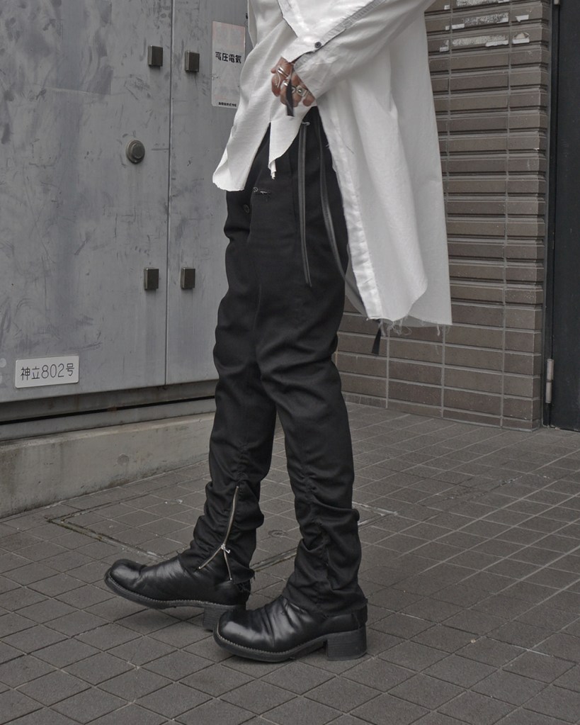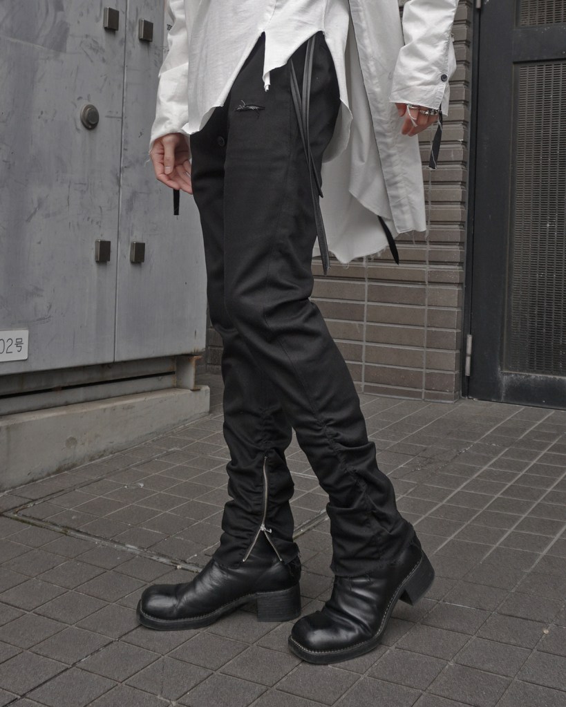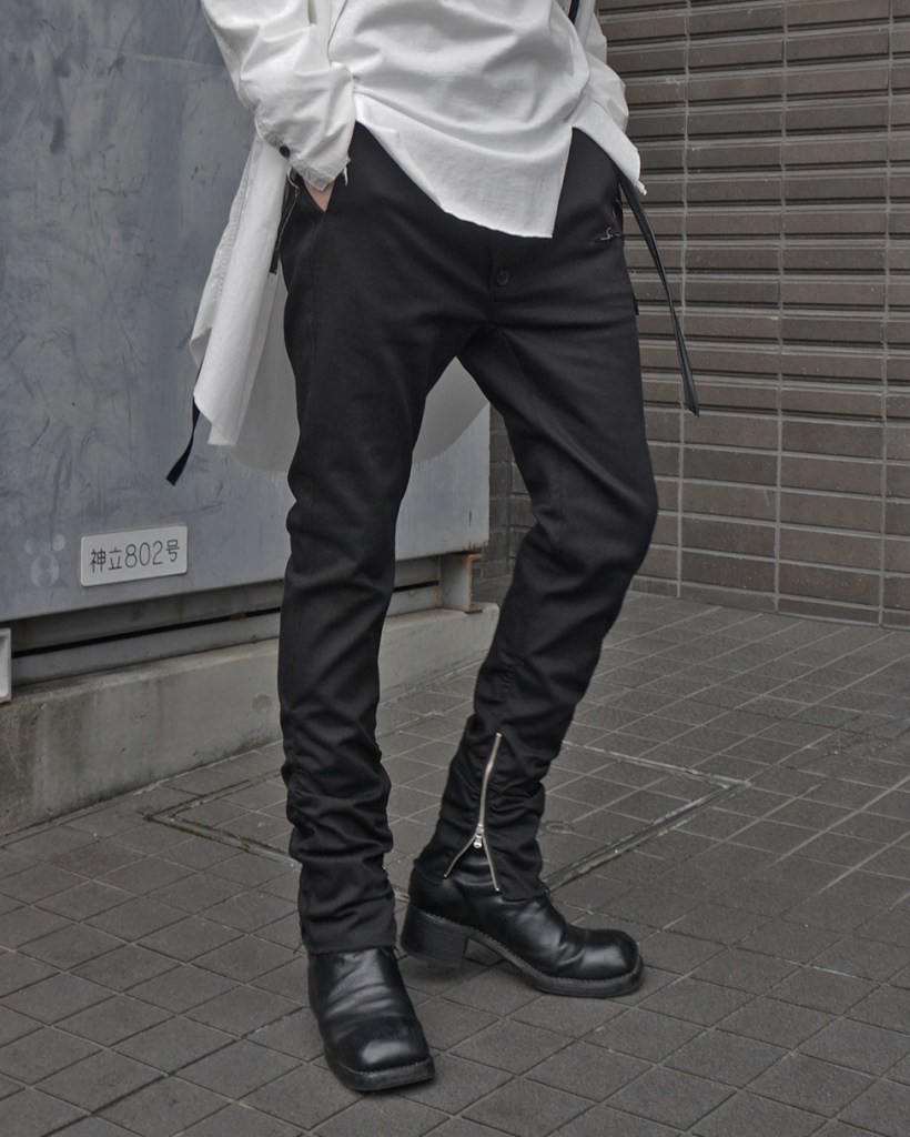 パンツと靴の流れをスムーズにする裾のファスナーはマストのギミックでありつつ