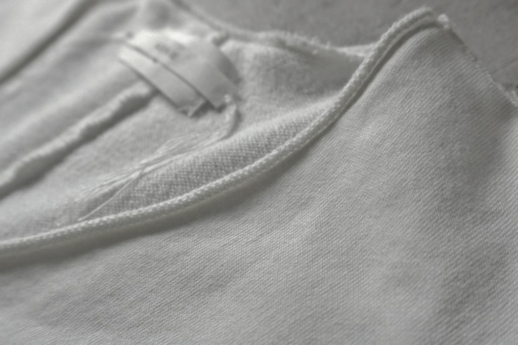ちなみに、襟はただの裁ち切りでは無く細いリブ仕様。