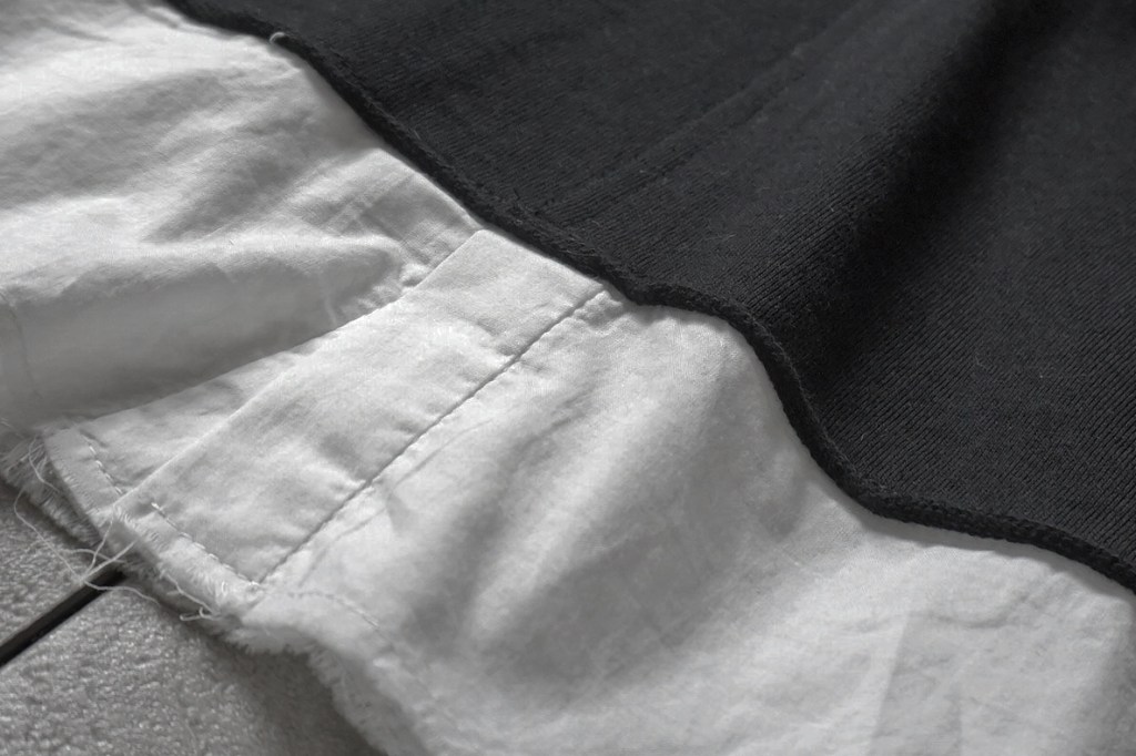 従来のレイヤードカットソーは身頃が2枚重ねの仕様。
