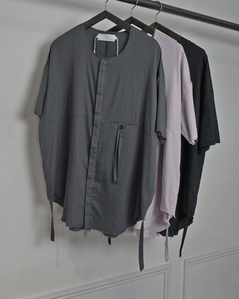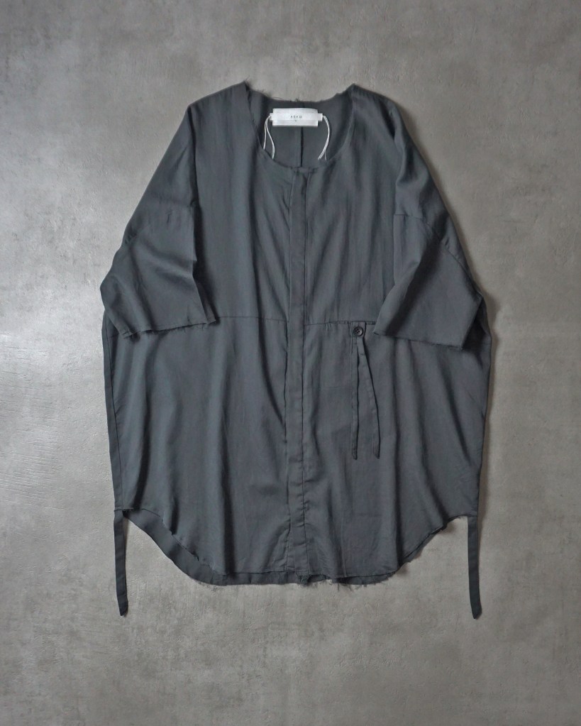 肩が自然に落ちるリラックスシルエット。夏らしく身幅は大きくとってあります。広げるとボックスっぽくなりますが、着用すると自然な落ち感になりますのでどなた様もご着用頂ける形。
