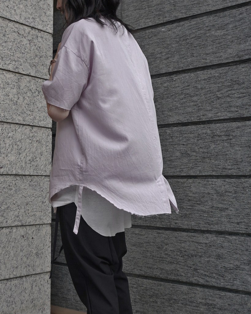 今回はピンクというよりラベンダー寄り。薄いパープルみもあって絶妙な色彩。ASKYYでは珍しい色彩。リゾート感だけではなくちゃんとおしゃれ感のある色、例えばライトな色味のブルージーンズや白ショーツとかのイメージもあり。