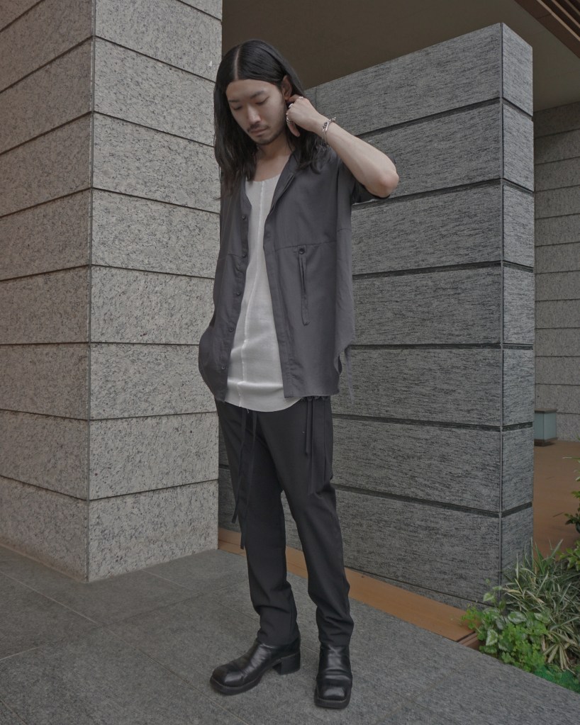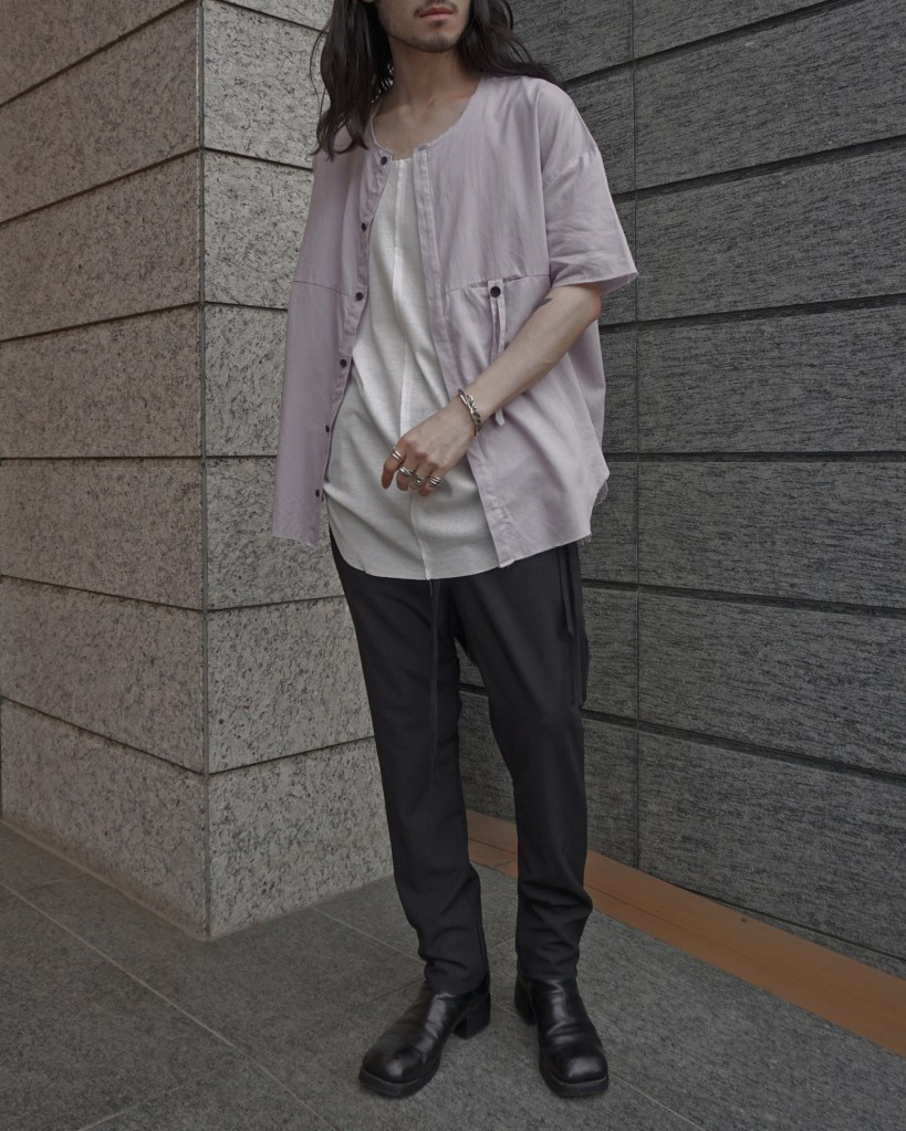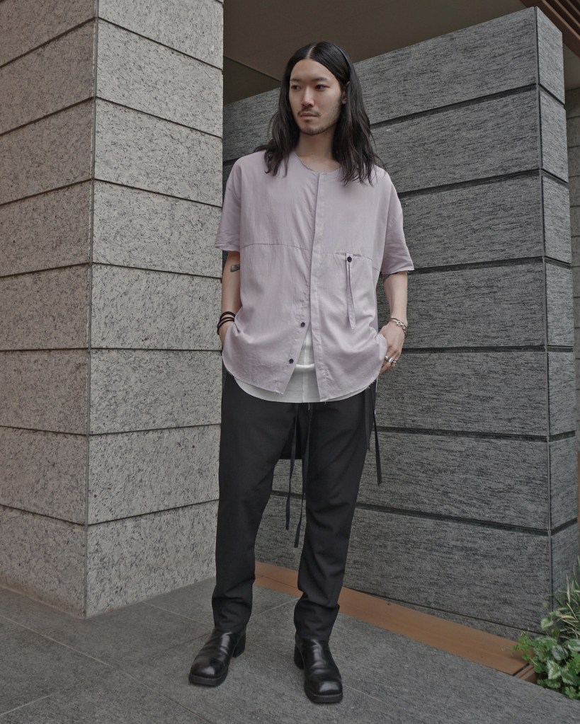 オーバーに抵抗あるお客様も、半袖という部分・季節的な部分をふまえて取り入れやすいので是非お試しください。着画ではやってませんが、袖は2回くらい折った方がバランス取りやすいと思います。