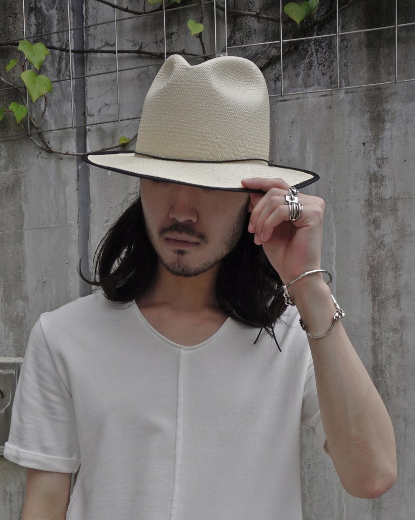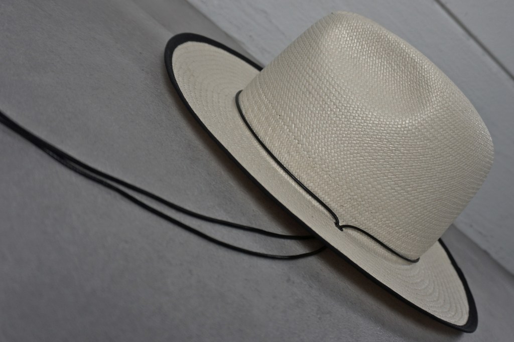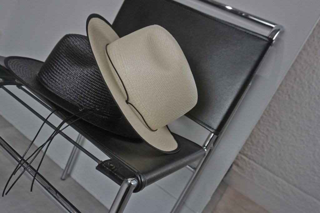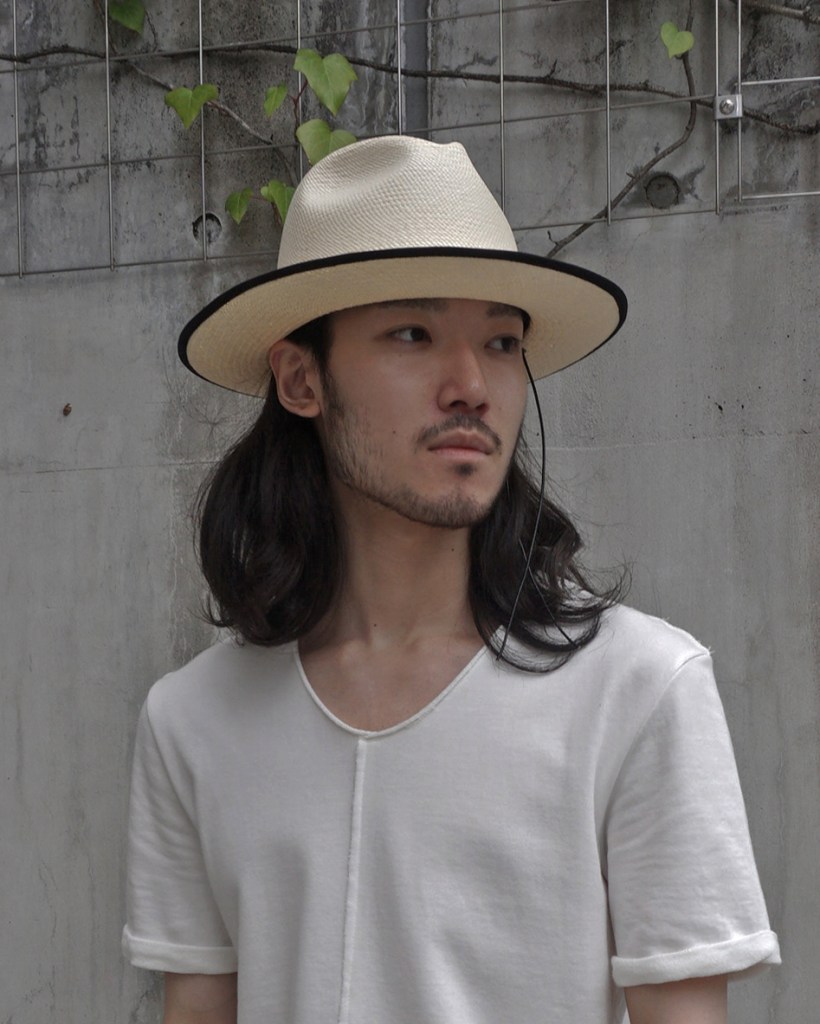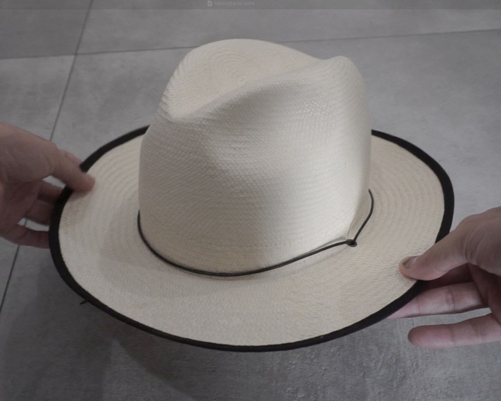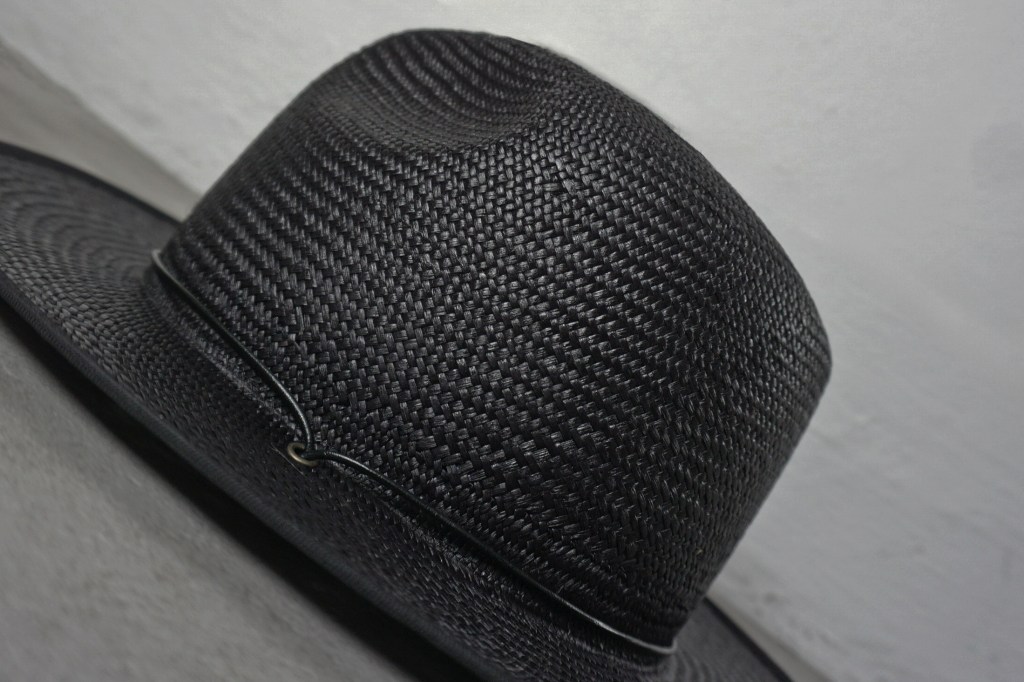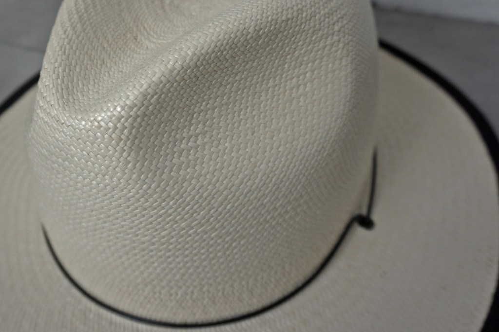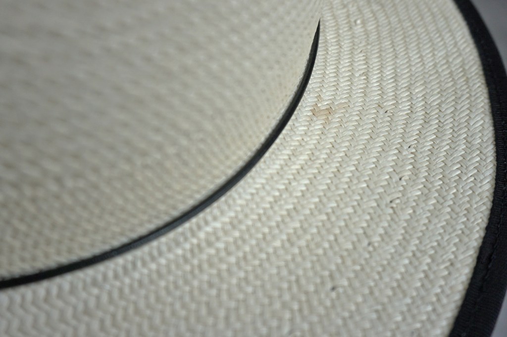 ※ハットを着用する際の基本というかマナーではありますが、くぼみ部分はデリケートになっておりますのでつままないようにしてください。これはフェルトハットでも同様ですが形が崩れますし、草の場合は割れてしまいます。かぶる際は必ずツバを持って着用するようにしてください。