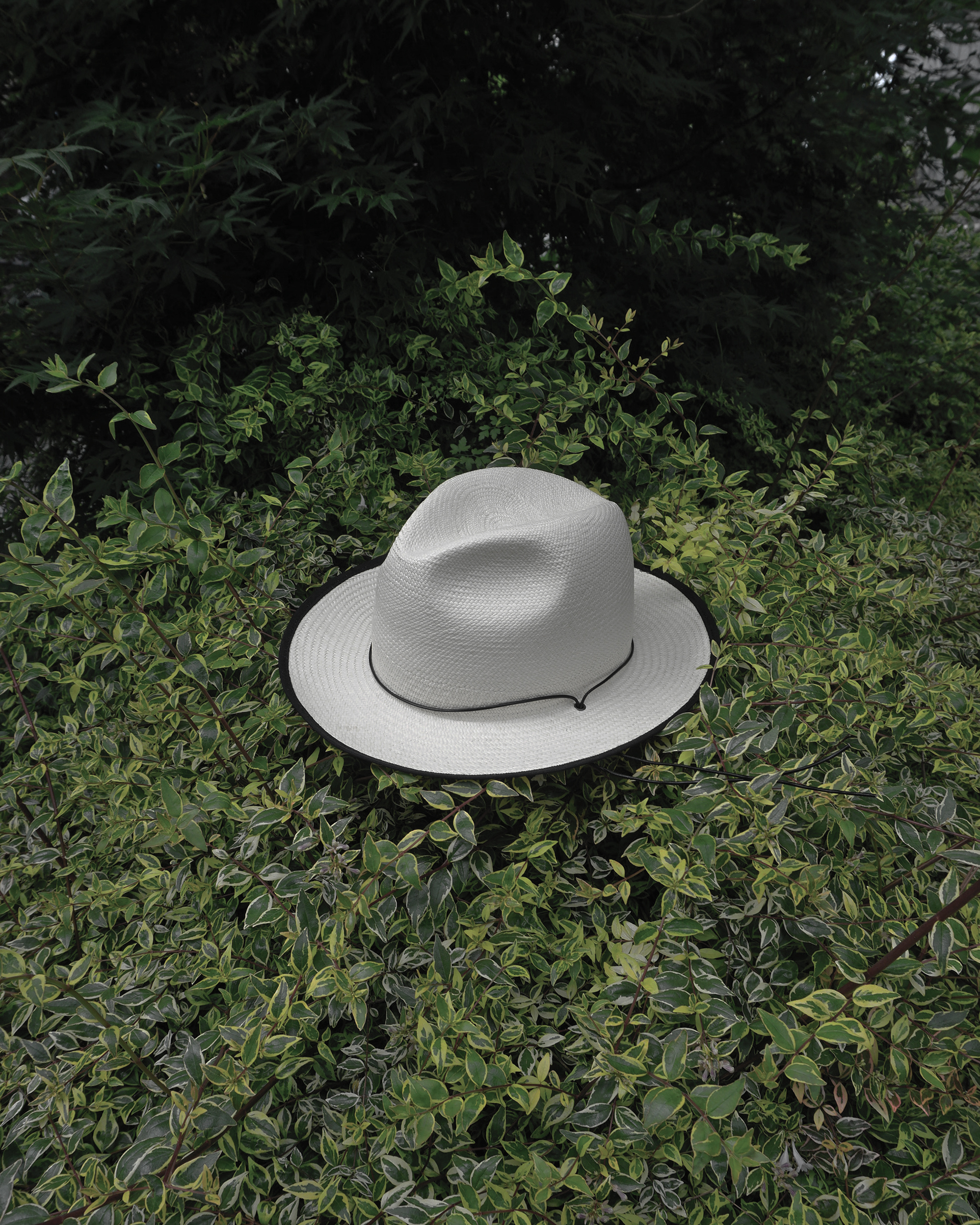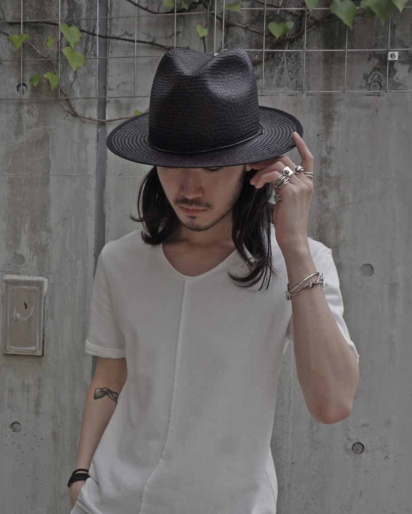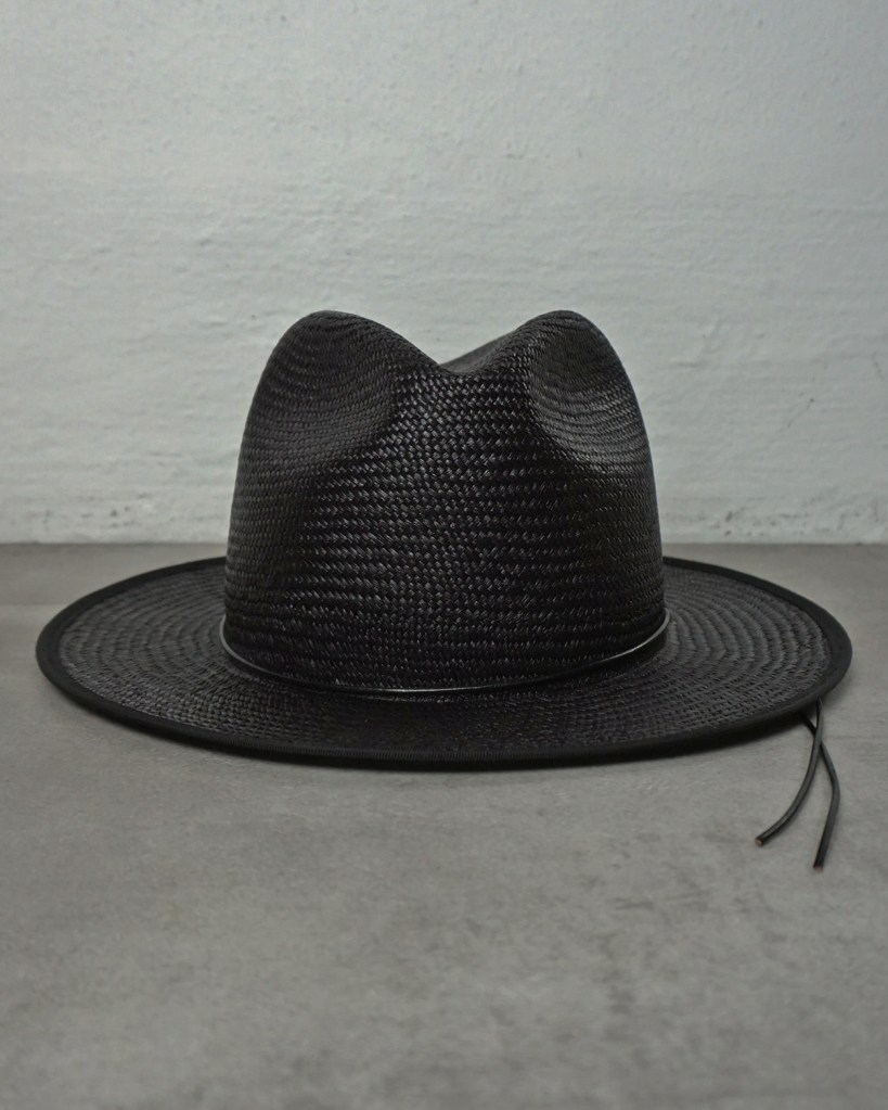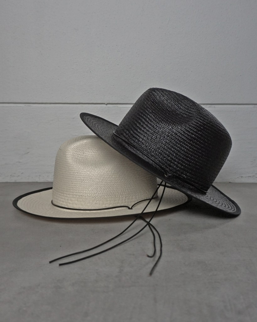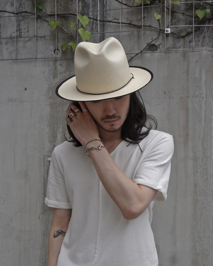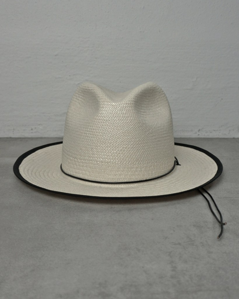 ※ハットを着用する際の基本というかマナーではありますが、くぼみ部分はデリケートになっておりますのでつままないようにしてください。これはフェルトハットでも同様ですが形が崩れますし、草の場合は割れてしまいます。かぶる際は必ずツバを持って着用するようにしてください。