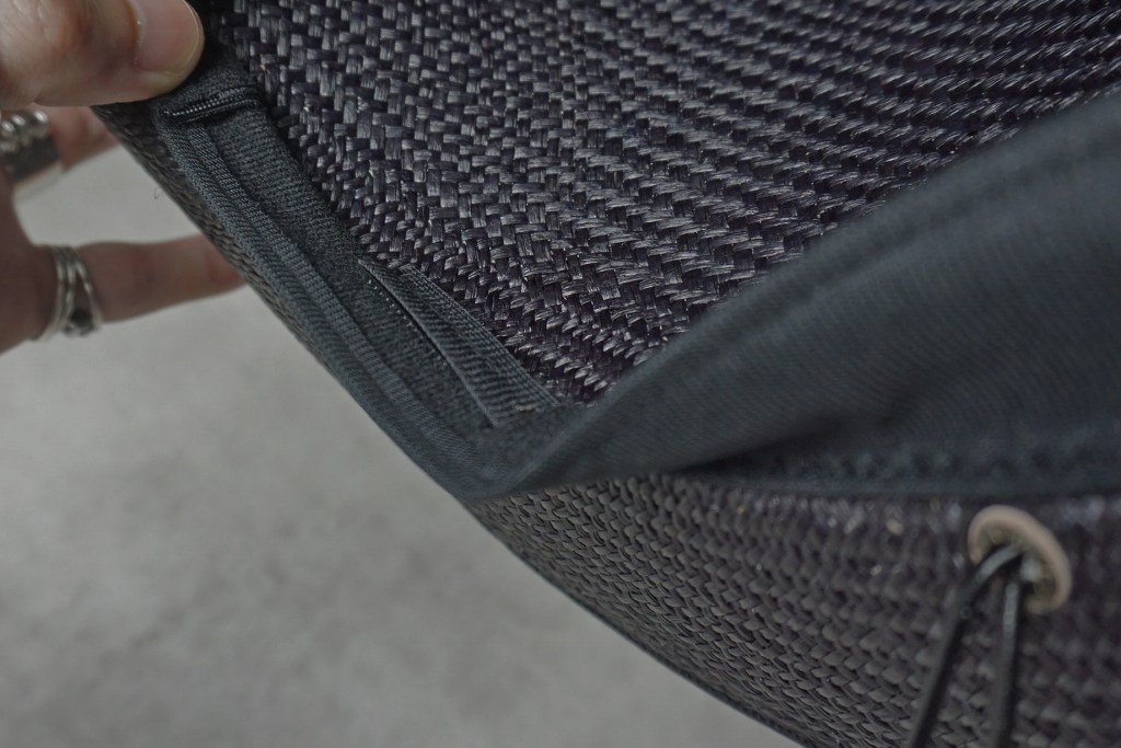 外側に綺麗なパイピング。リボンを省いた事でミニマルなデザインに仕上げました。