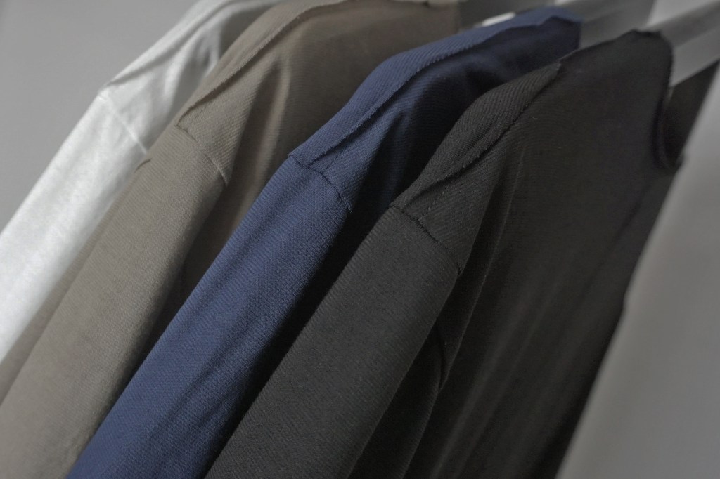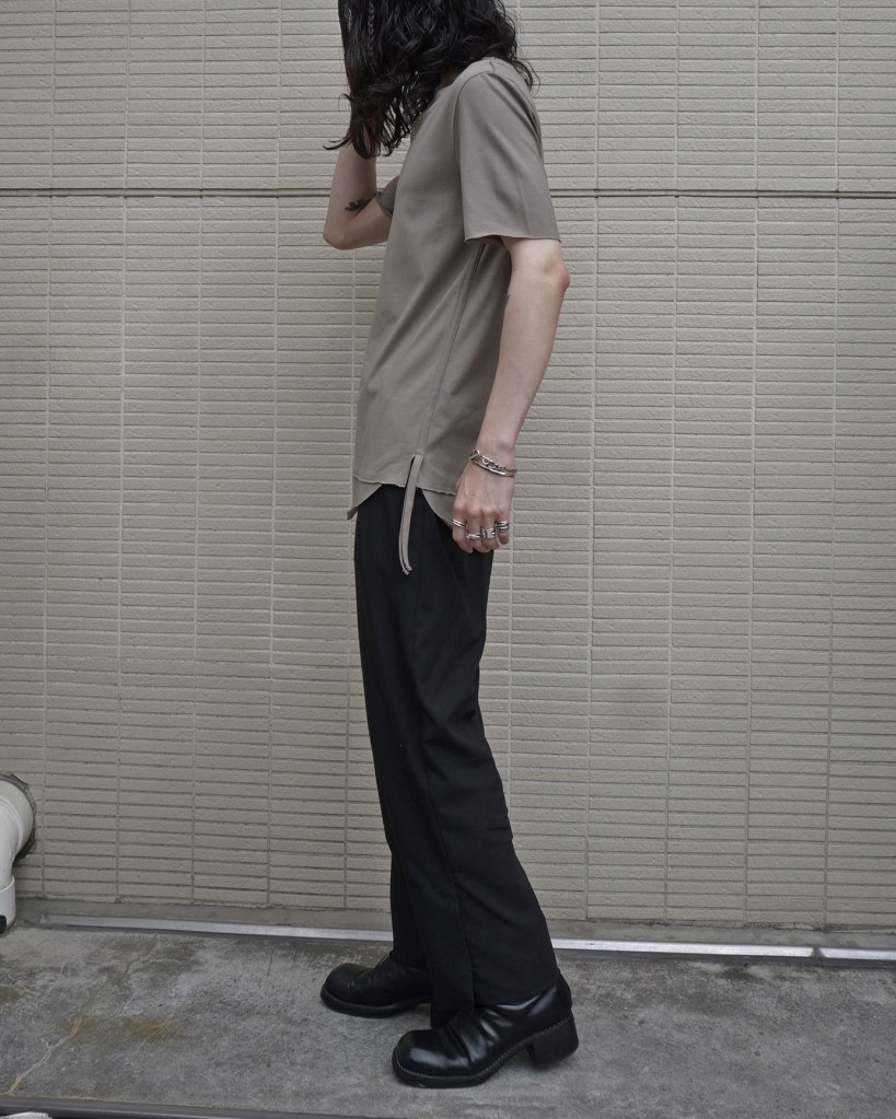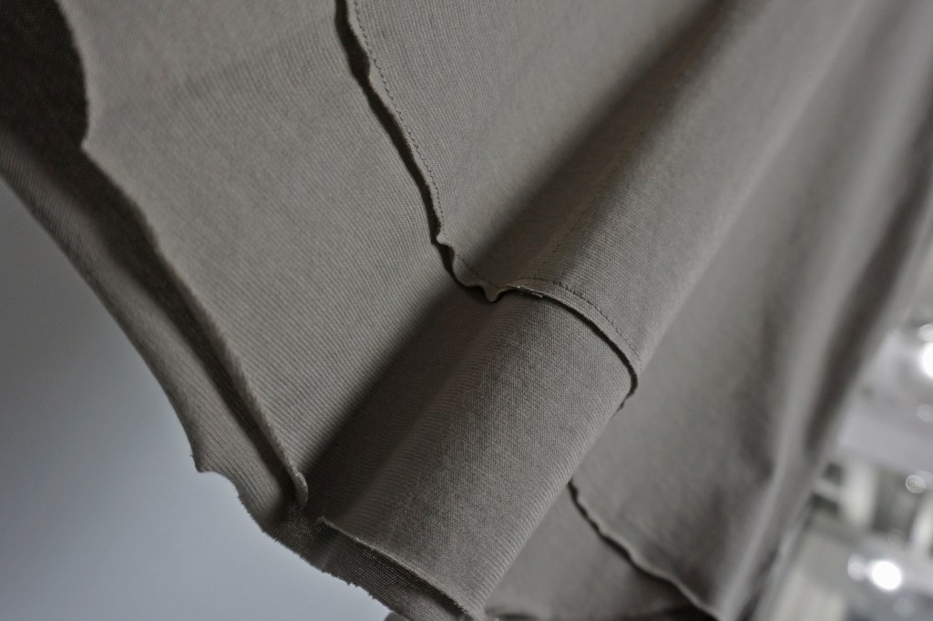 レイヤードカットソーが2枚仕立てだから、今回は1枚仕立てだしその分安くなるだろうと思われたお客様もいらっしゃるかもしれません。いや、僕もそれならめちゃ嬉しいのですが、パターンを1から構築しておりまして、、そう簡単ではないんですよね。こればっかりはごめんなさい。。完全新型ですので通常のカットソーの価格とさせて頂きます。