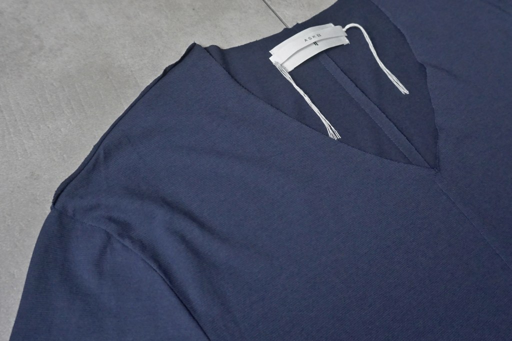 最もASKYYらしいデザイン性が極まったVネックカットソーかと思います。