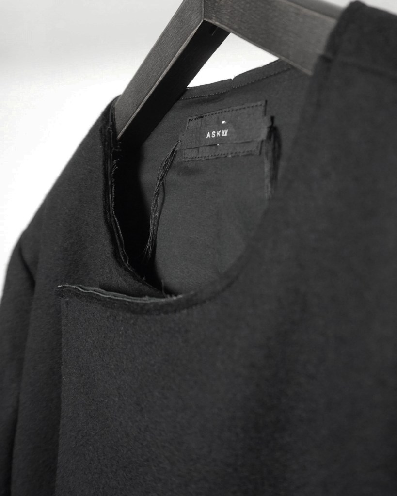 ブランド設立当時は俗にいうパリの”アルチザン”や”ブラックモード”の勢いが全盛であり飽和状態でした。今のオーバーサイズの流れがくる前はまさにそれが時代だったといえるでしょう。(実際現地の展示会でも合同展は大半がブラック系でしたし、買い付けているバイヤーも多かった)うちはその中でも新世代というか、ニューカマーの枠。