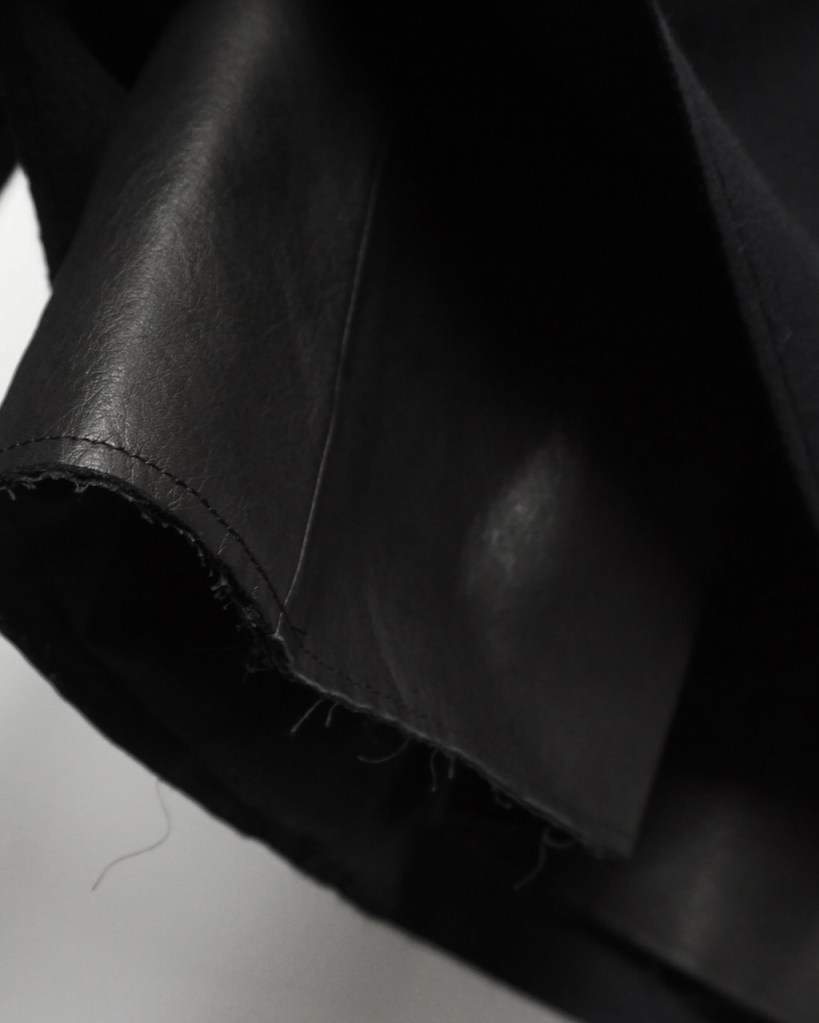 ASKYYのレザージャケットで毎回のように使用しているあの偏愛レザーがここにでお出まし。タンニン鞣しの本革を贅沢に使った珠玉のマテリアル。通常、レザーは外側に使うもの。しかし本作ではあえてメルトンの内側にレザーを仕込むという厄介な構造に挑戦しました。見えない場所にこそ“本物”を宿す、唯一無二のアプローチ。