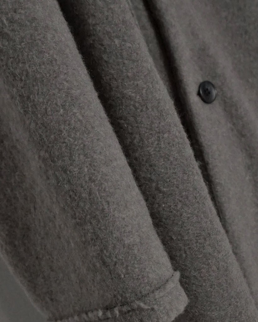 そこまで寒くない日は取り外してさらっと着るノーカラーでご着用ください。