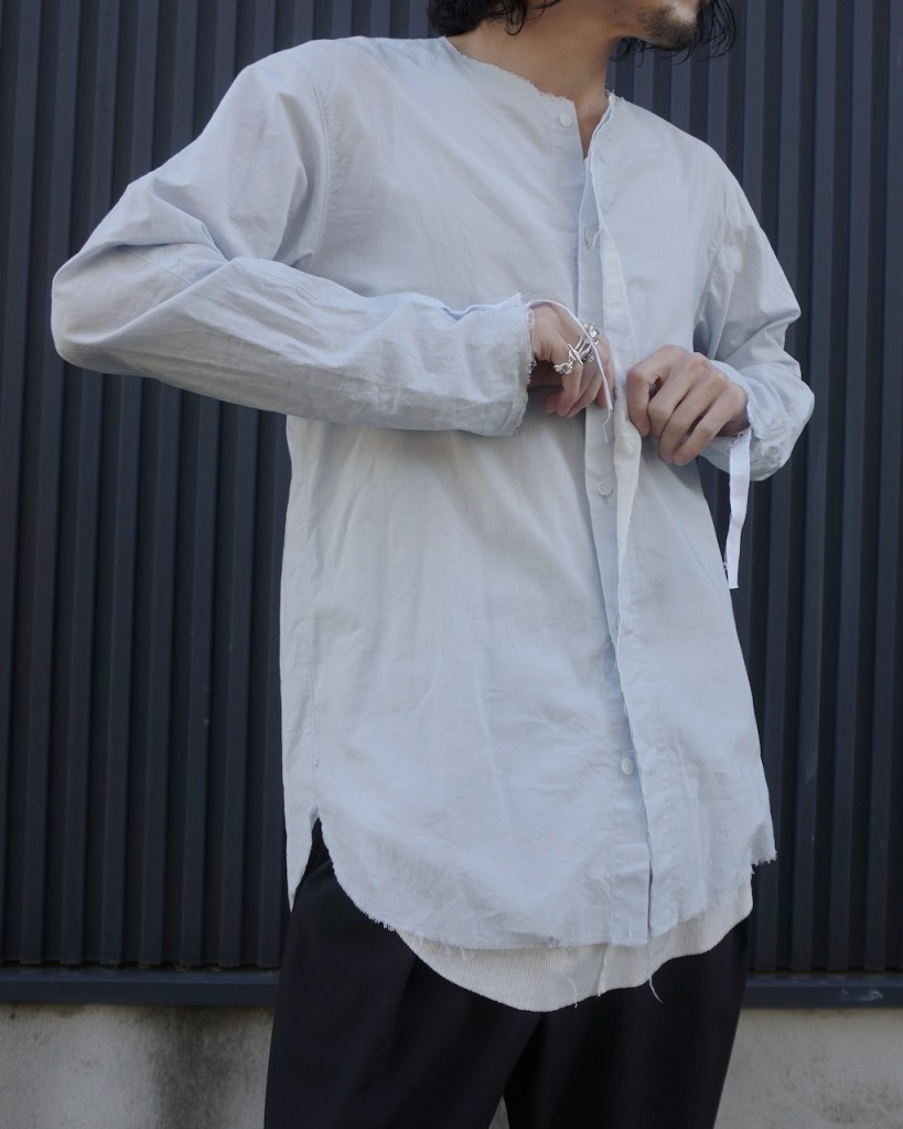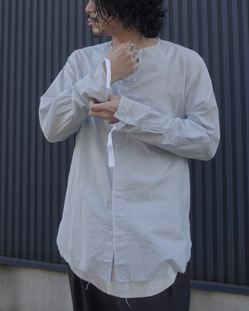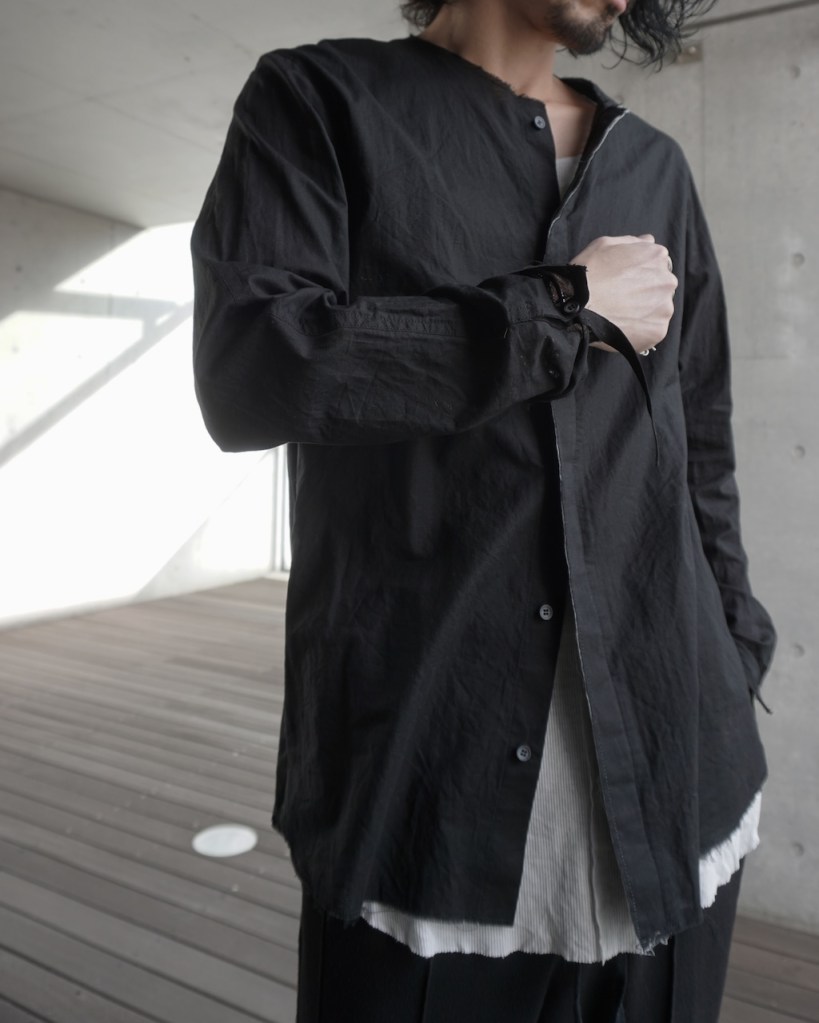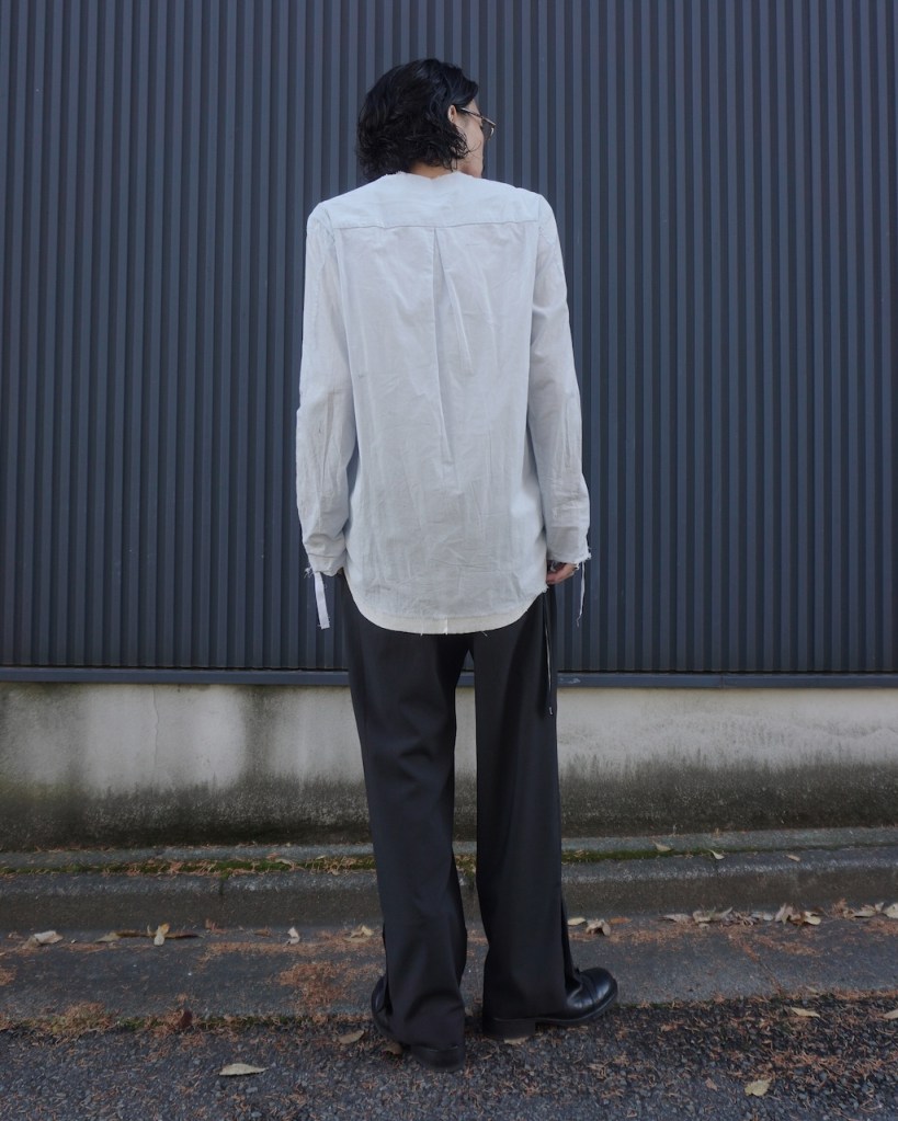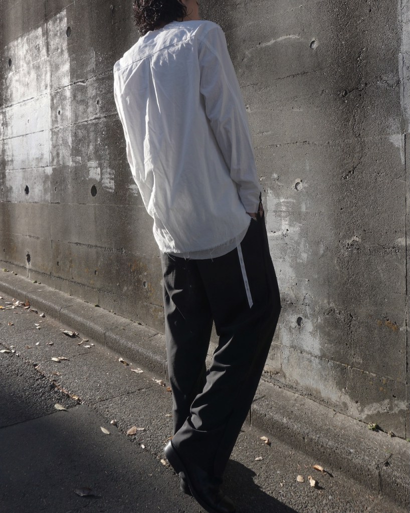 以前のRIBBON SHIRTSは敢えて袖丈が長めの仕様でしたが、今作はパターンを微修正しました。
