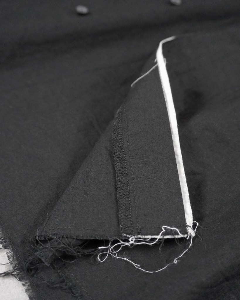 フロントの比翼裏は色を変えてアクセントに。
