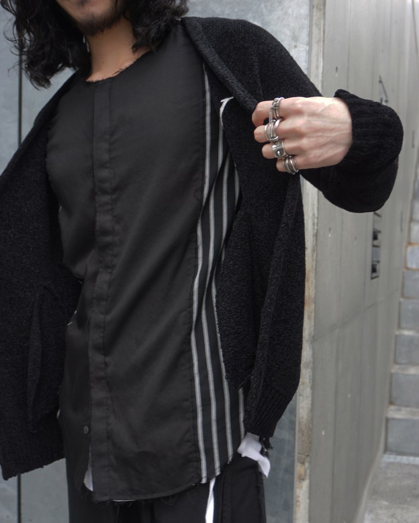 ・重ね着した状態では内側の表情を強調し、脱いだ瞬間に現れる外側の異素材が印象を大きく切り替える
