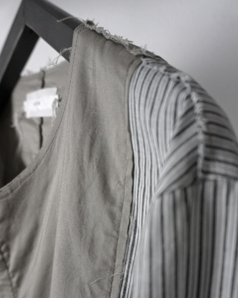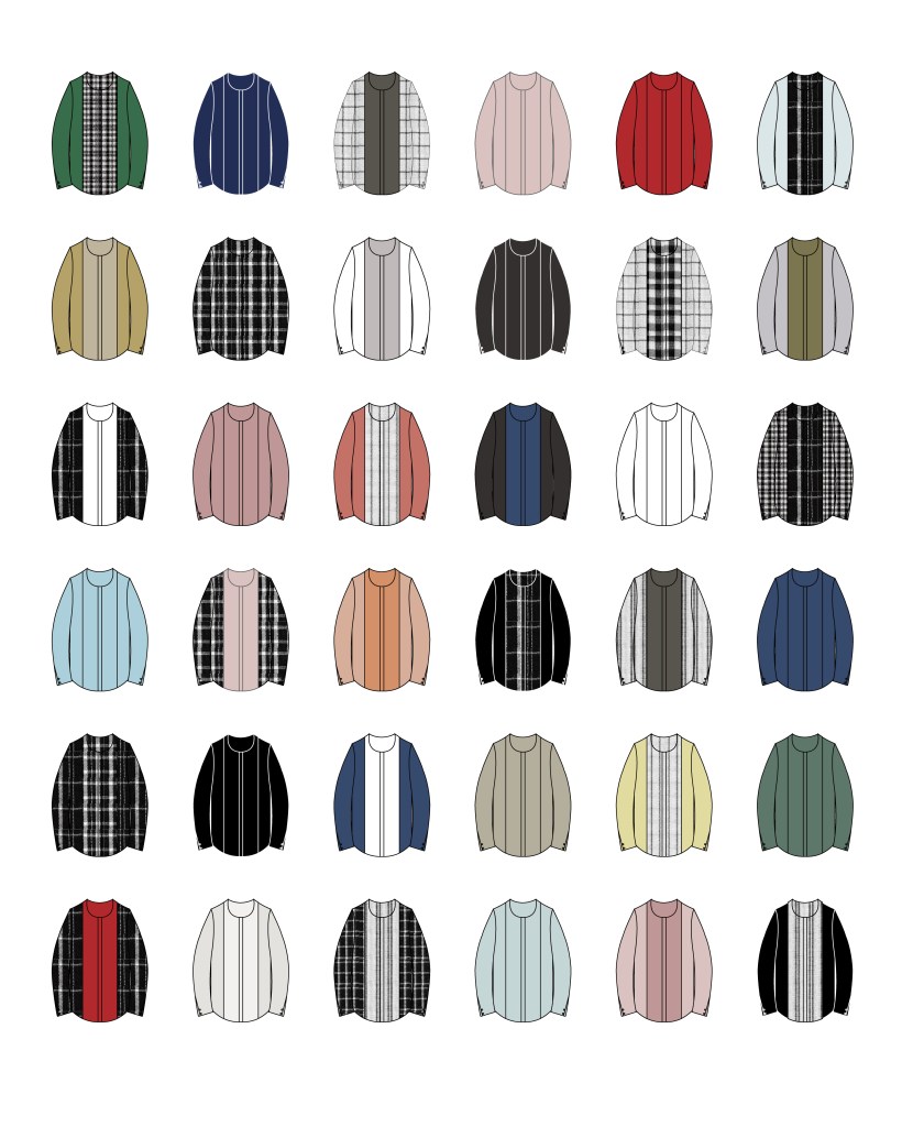 身頃は2枚仕立て、側面は1枚仕立てでパターンを作成。以前リリースしたものですとわかりやすいのですが、そのときはシャツとカットソーのコンビだったんですね。