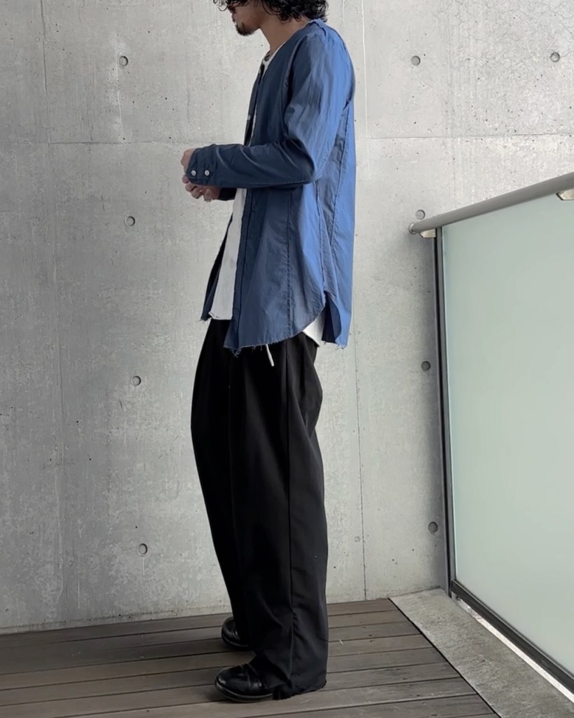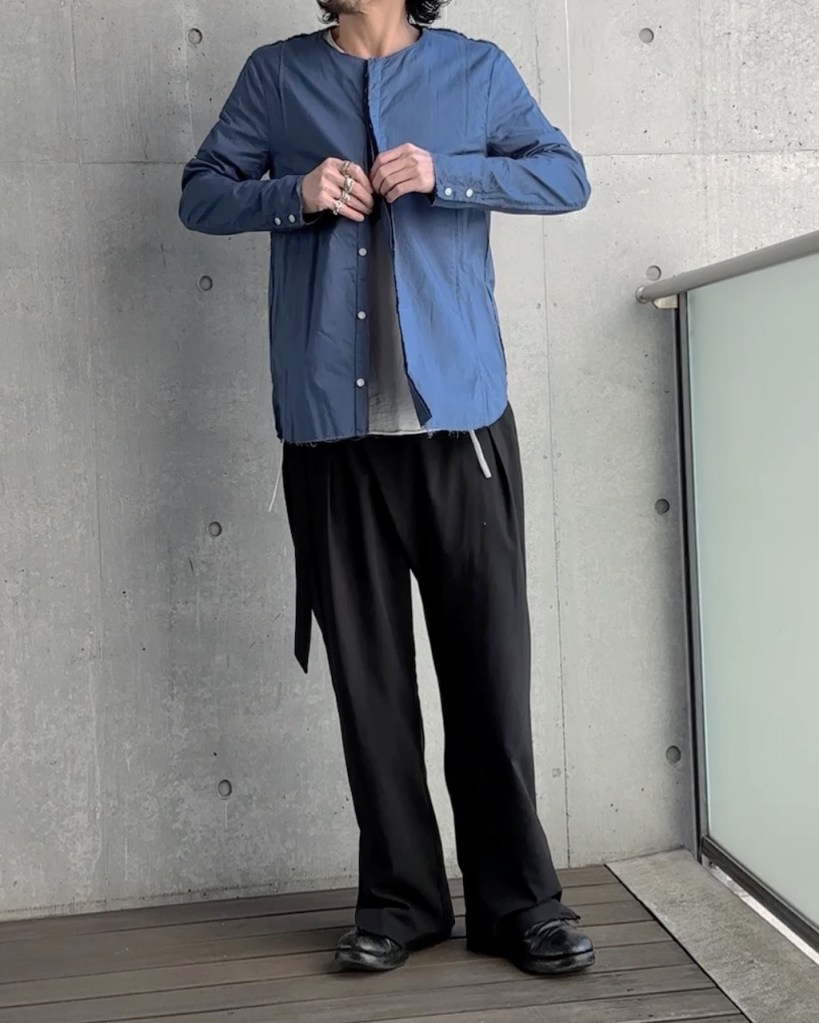 コーデに割く時間は必要ありません。襟がない分、超ニュートラルなアイテムになってます。