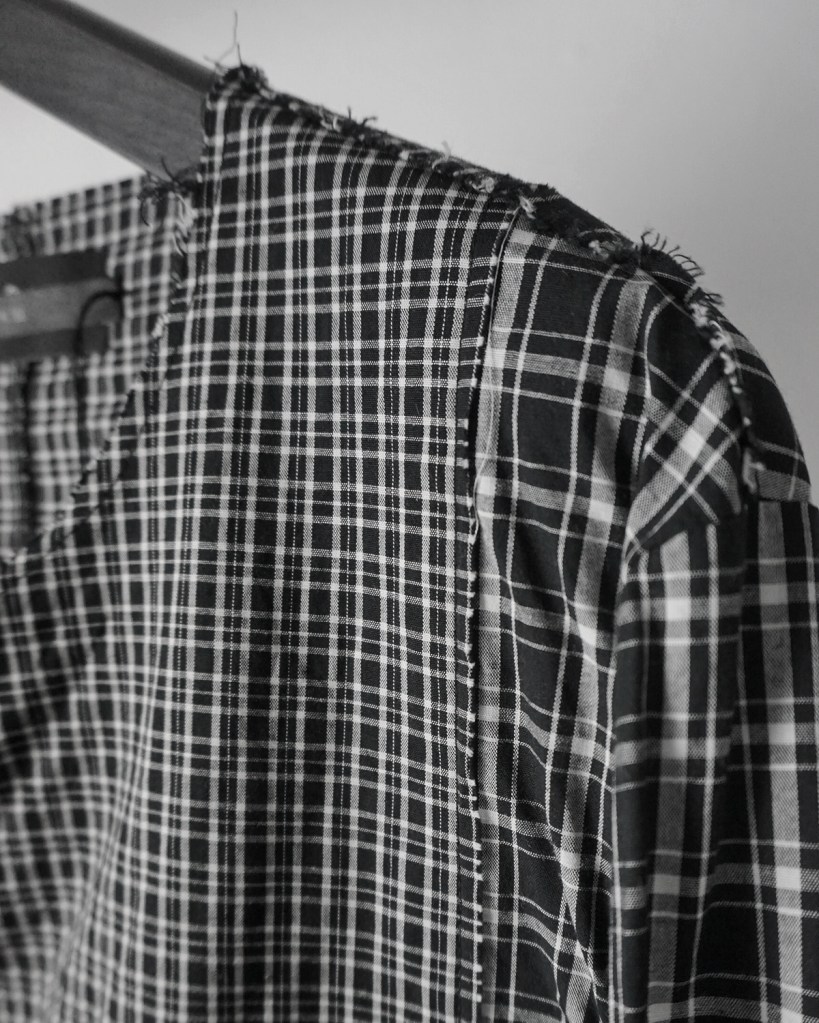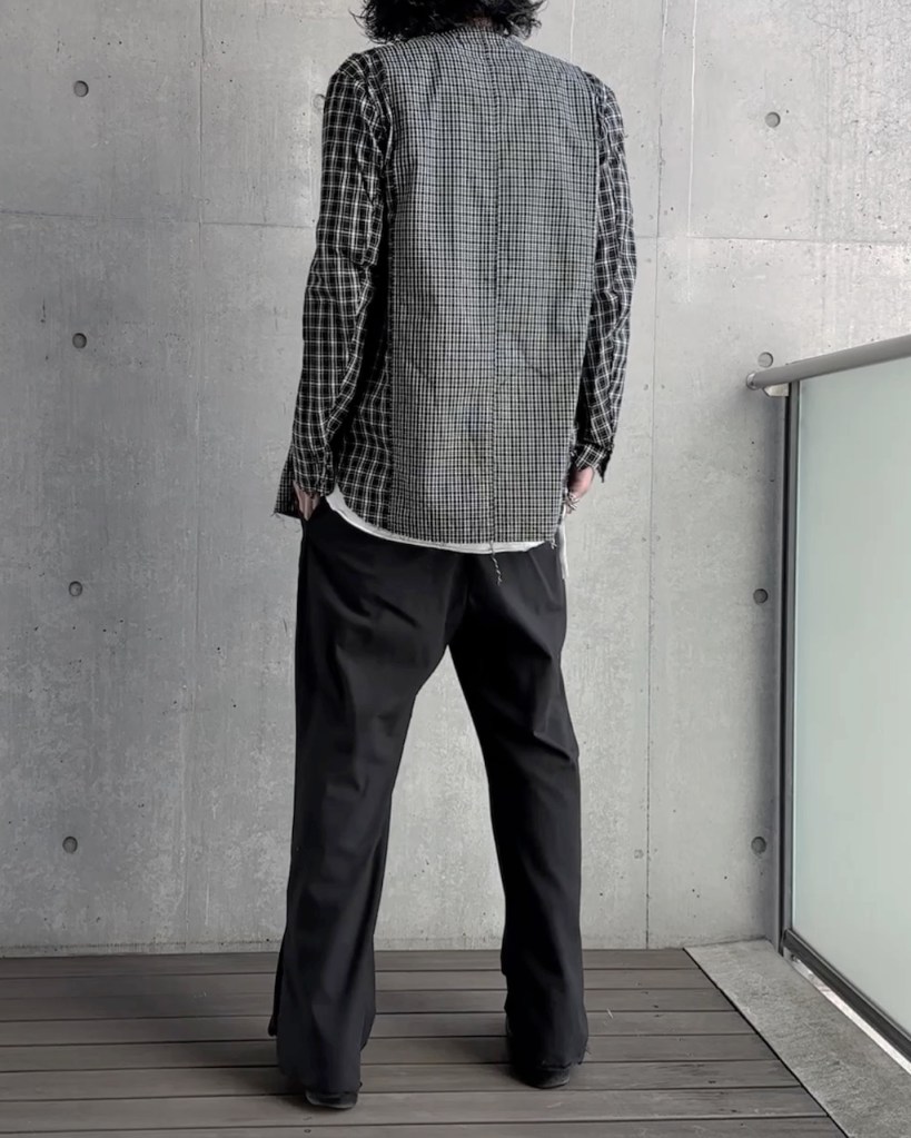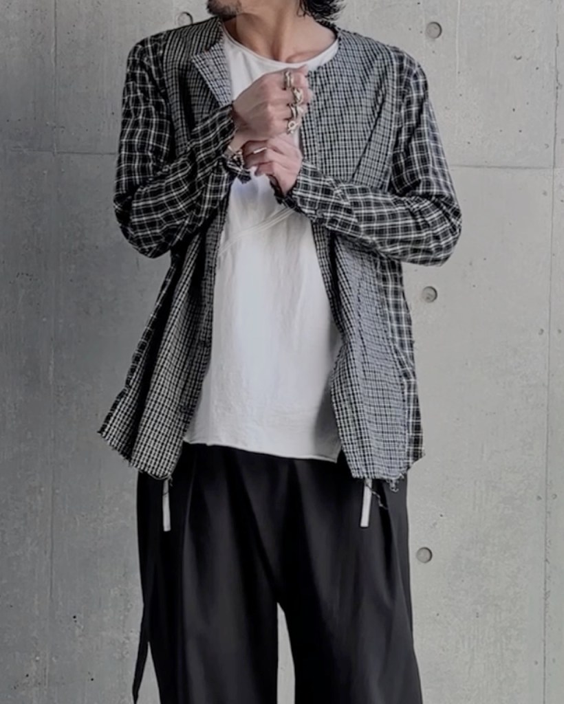 例えば大きいチェックを内側にしたり、袖は無地にしたり。