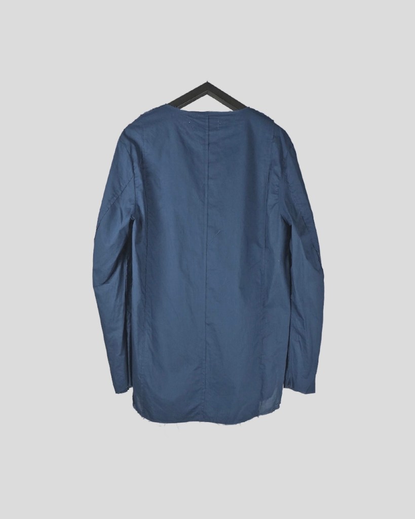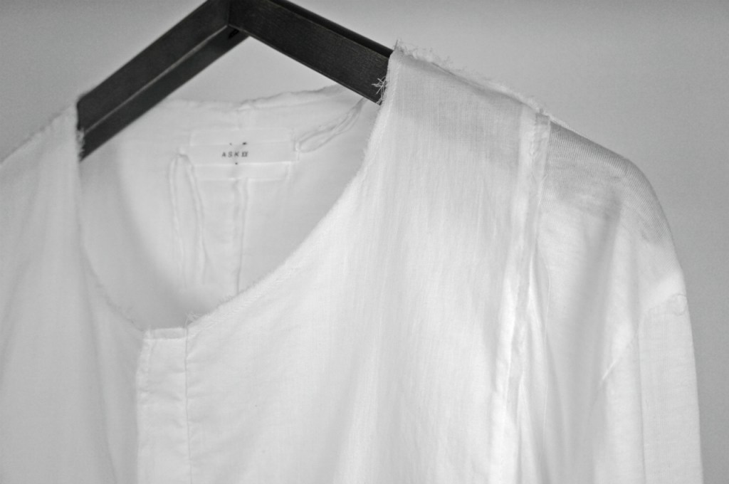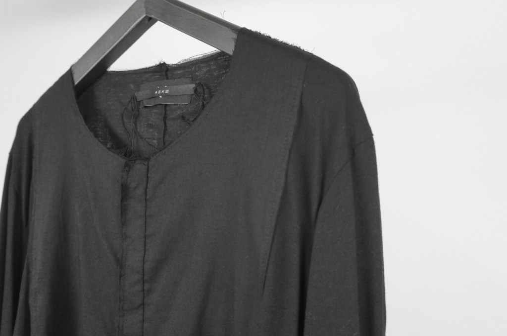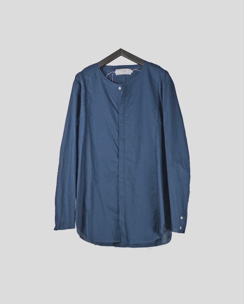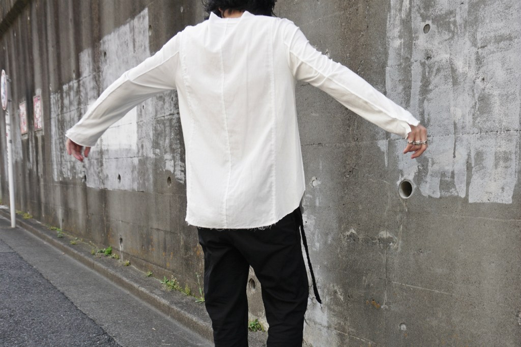 インナー・アンダーウェア的要素を兼ね備えるよう、ノーカラー仕様。