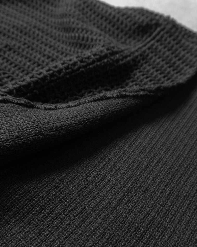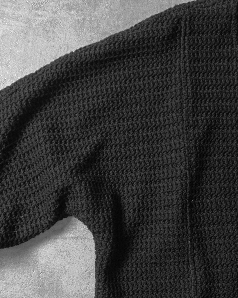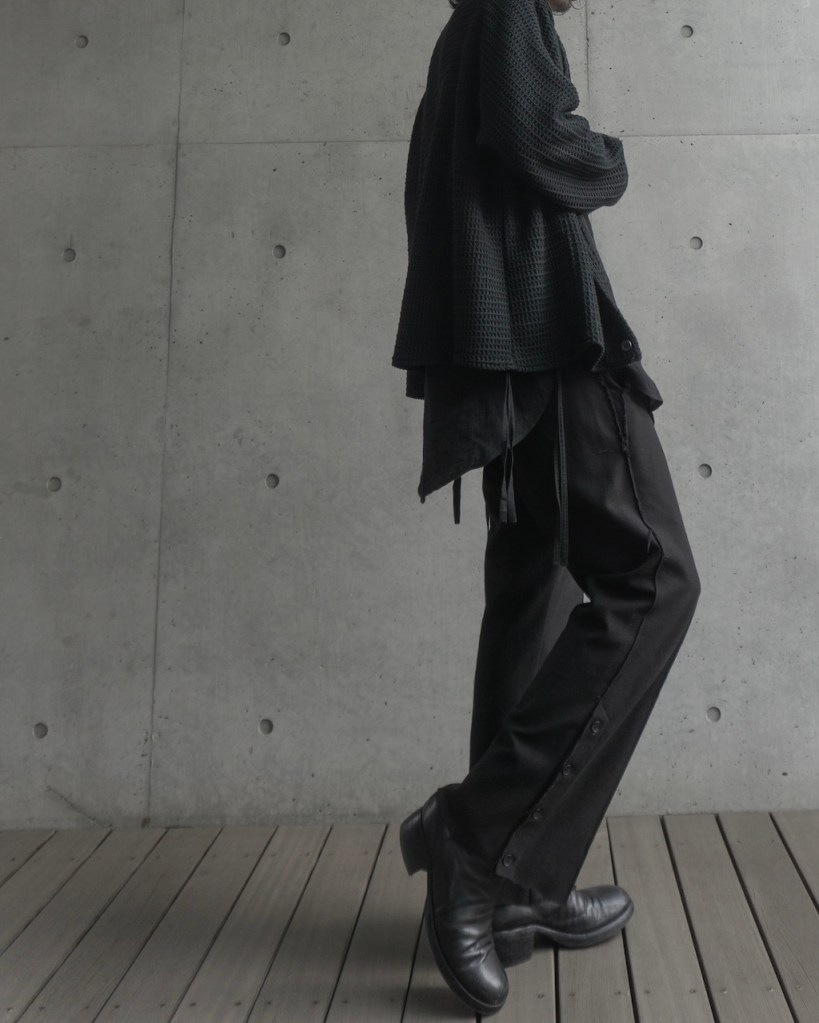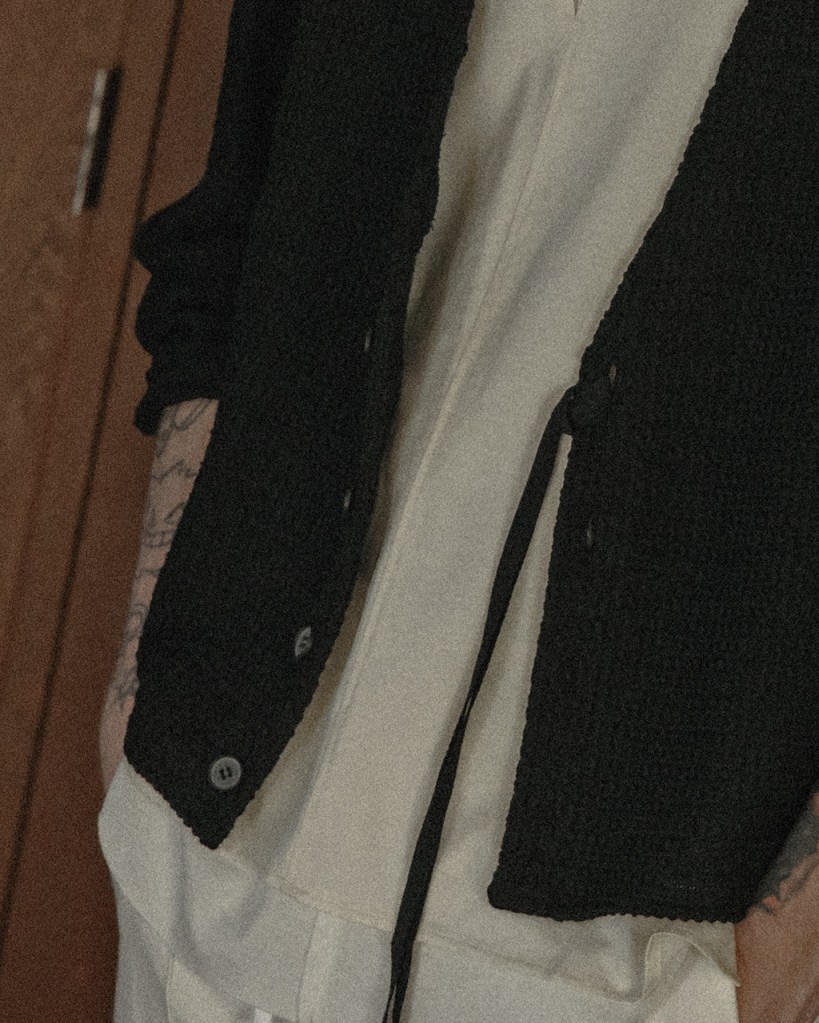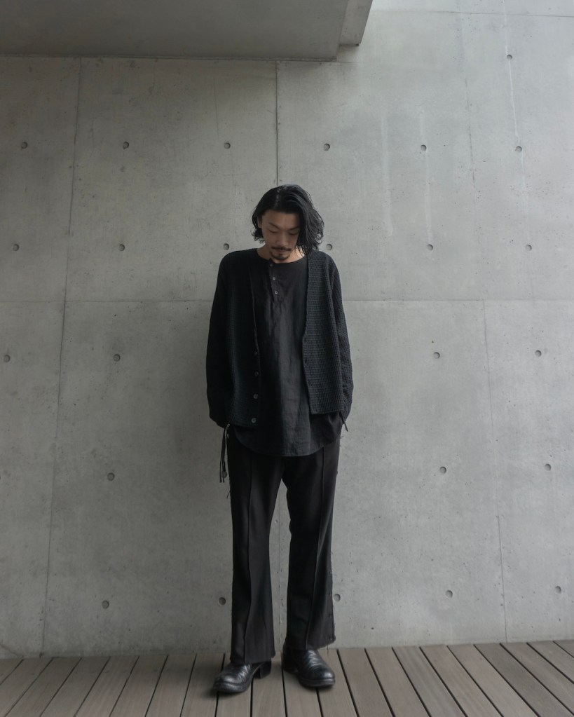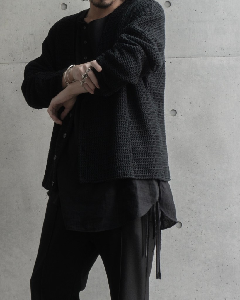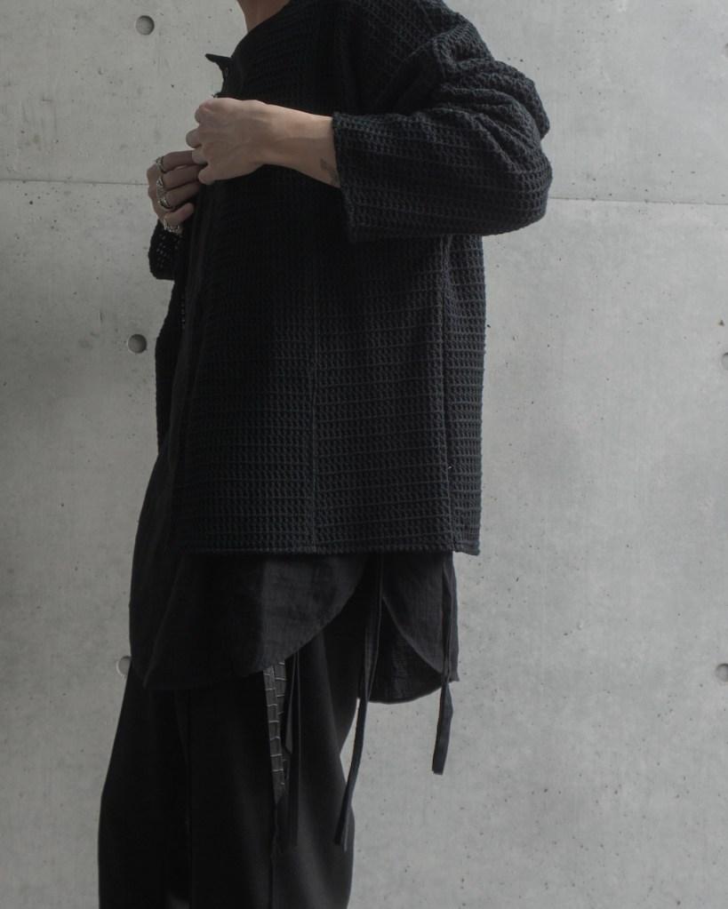 ただ、これまでのそれとは決定的に違いがございます。 それはここまで深く凹凸のある黒をASKYY史上で用いたことがないから。平面的な黒ではなく圧倒的な立体性を帯びた陰影。 羽織るだけでスタイリングの余白・空白を埋め、物足りなさを一瞬で充足させてくれます。