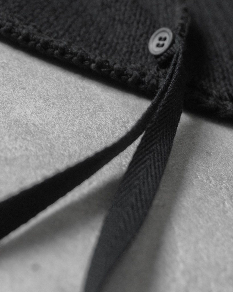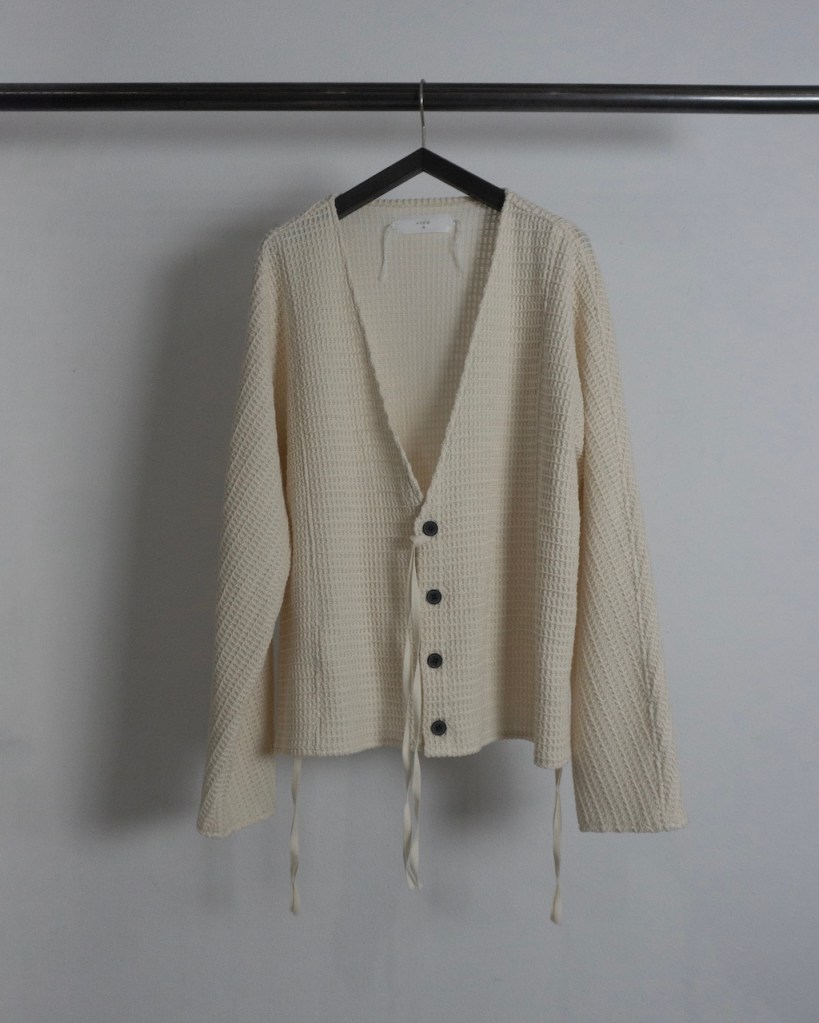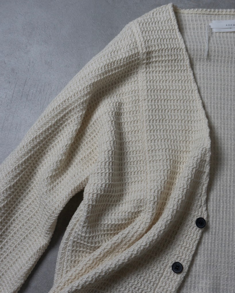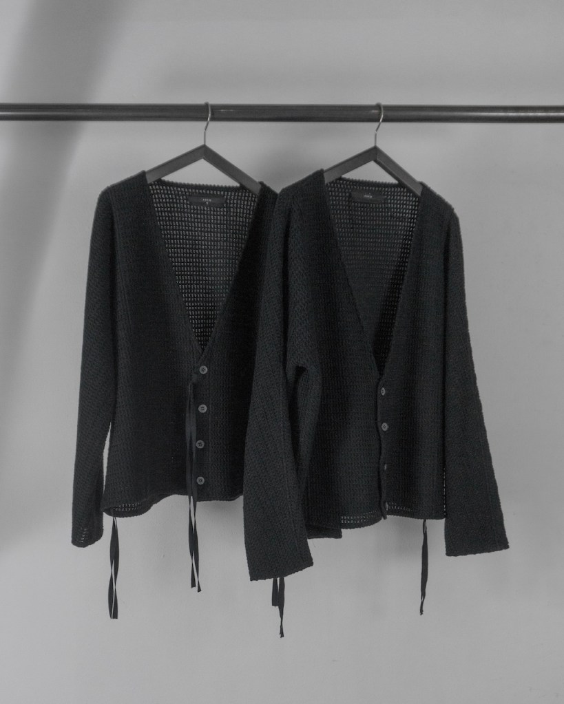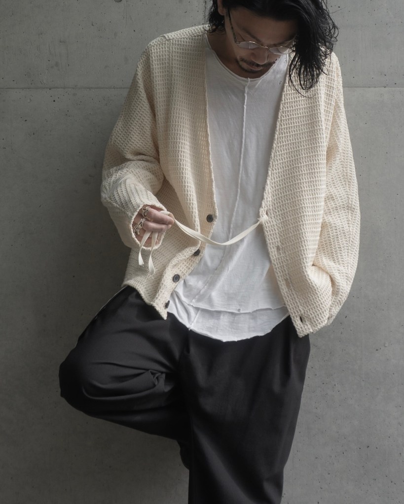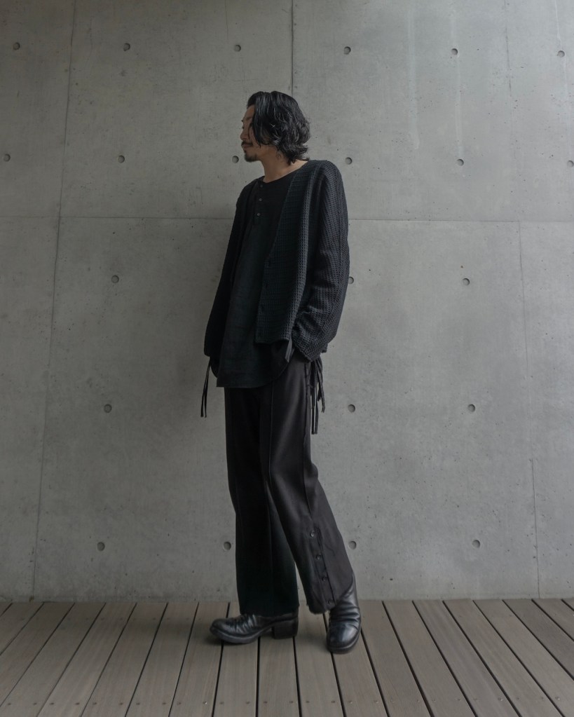 ドロップショルダーではなく、身体のラインを自然に馴染ませる設計。直近では24awのDORMAN CARDIGANの”あの”遺伝子を受け継いでおります。