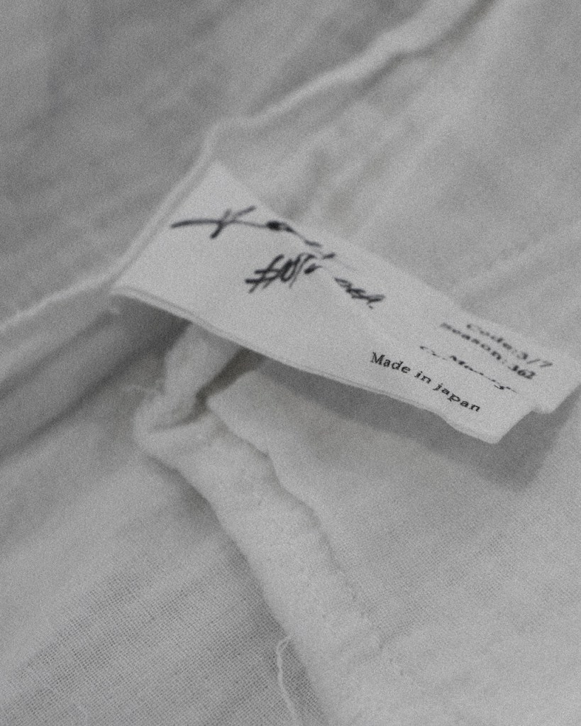 これは効率やリセールバリューに対する先日の宣戦布告。作品には合理性を追求しますが、違う部分は合理性じゃなくてもいいと思えるようになりました。デザイナーの手跡を残すことで、既製品を世界で一枚の個体へ。数年後、数十年後にこの服を眺めたとき、掠れた手書きの数字がこの服と共に過ごした時間の深さを静かに物語ってくれることを願います。