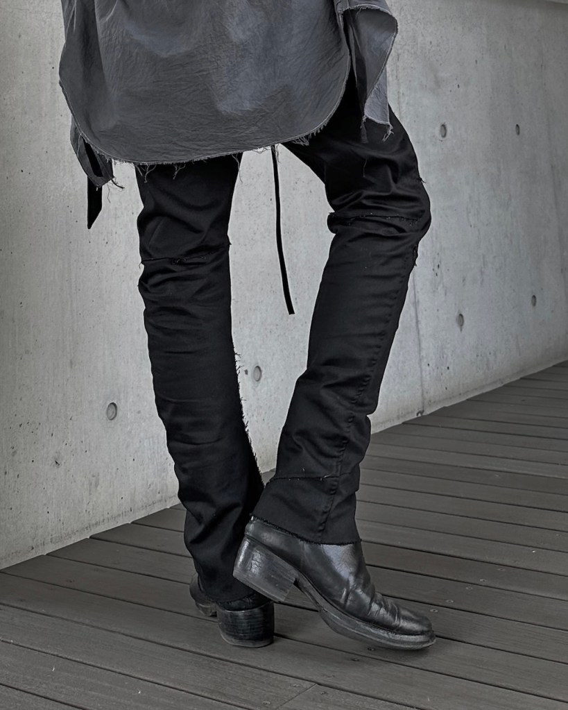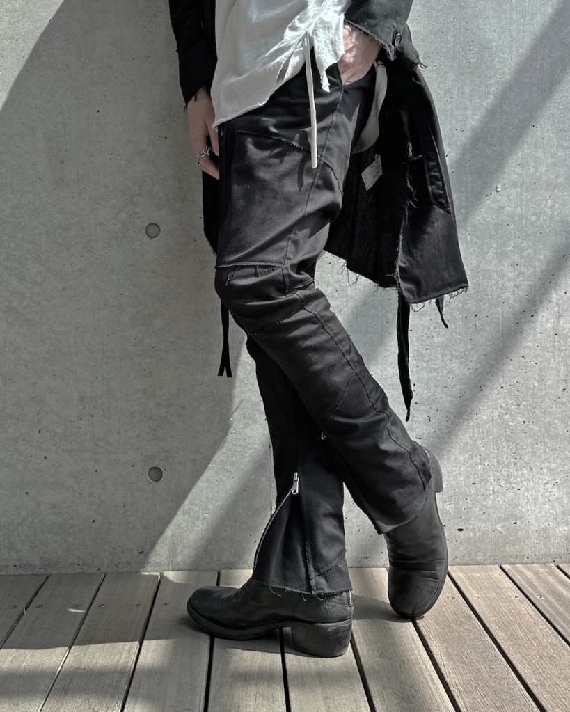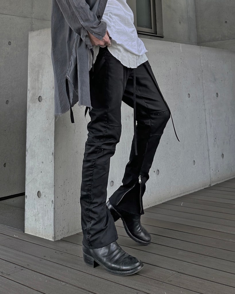 ブーツインか、アウトか。 その選択もこの一つで全く異なる表情を見せます。相反する2つの人格を、その日の意思で使い分ける。その自由度こそが、ASKYYが守り続けてきた様式美。
