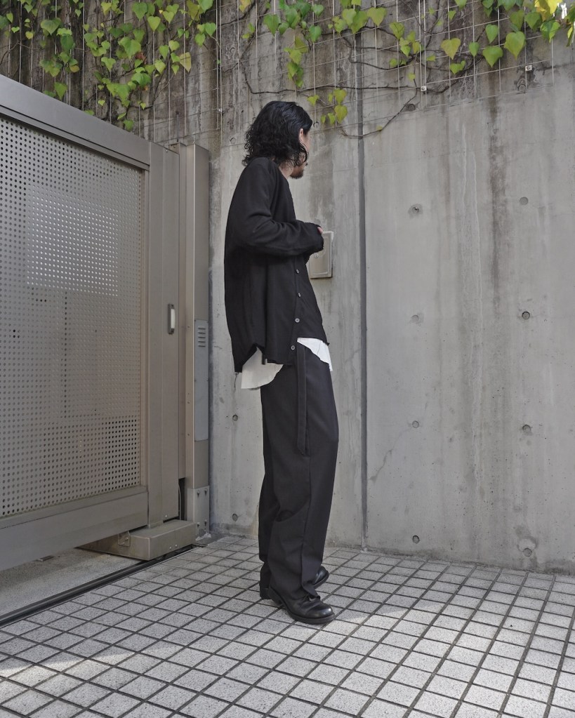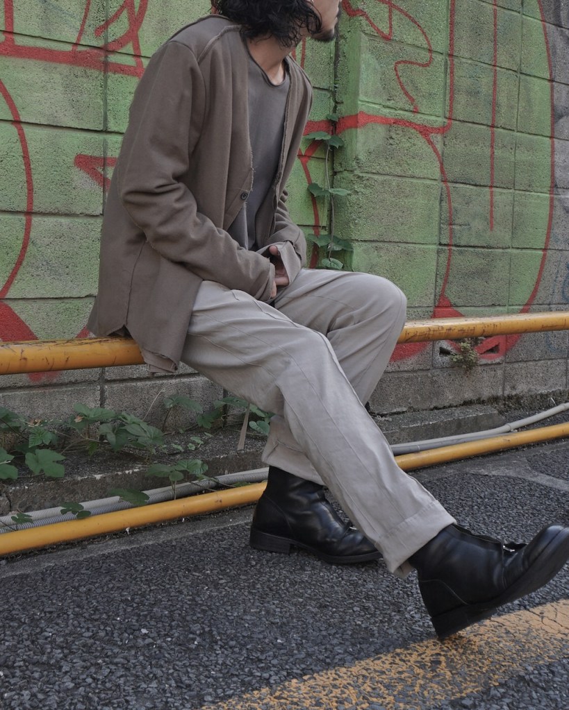 リラックスした印象のフォルムを担保しながら、ジャケットで用いる素材でその役割を果たす。