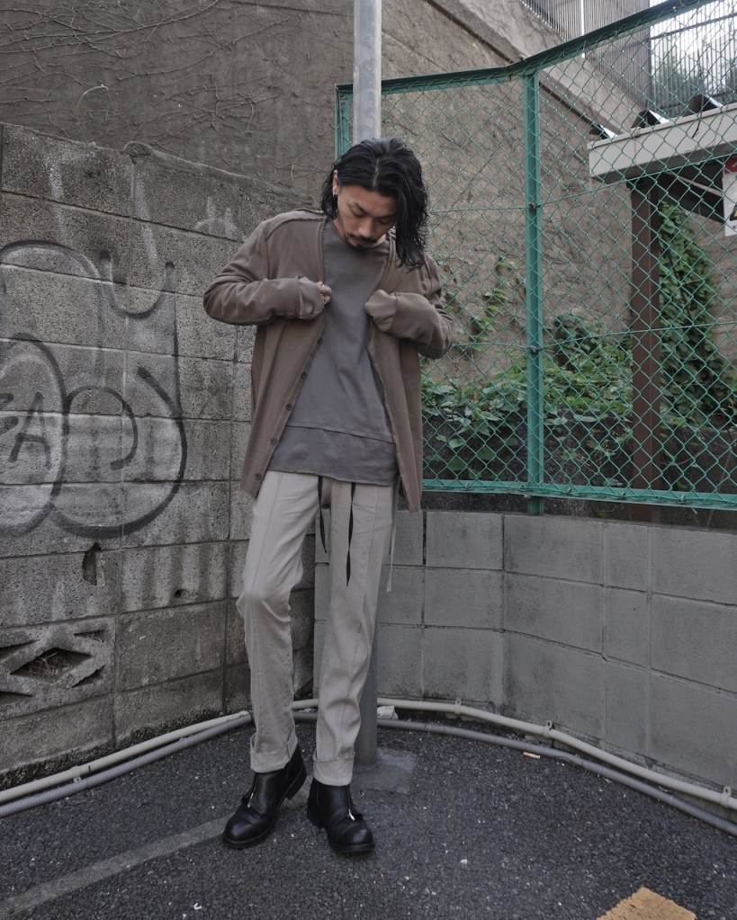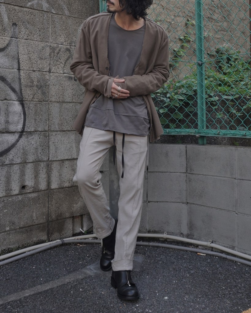 アウターの中に着ても嵩張りにくいのでちょっとした羽織としても最高のポジション。色はBLKとGREYSH KHAKI。GREYSH KHAKIはブラウン感が強めです。アースカラーのトーンで合わせて頂くとアルチザン雰囲気出ますね。