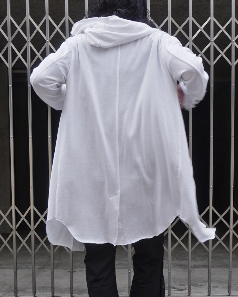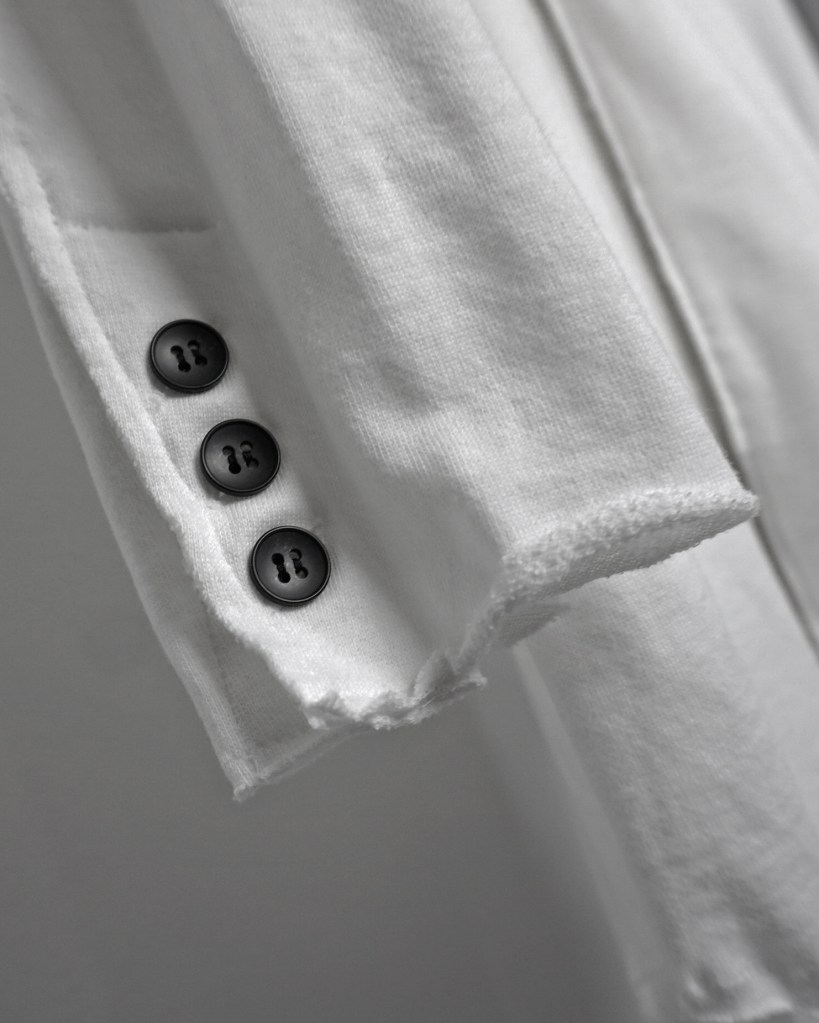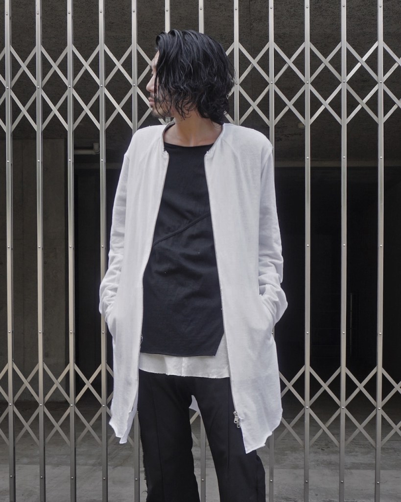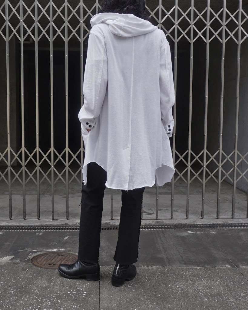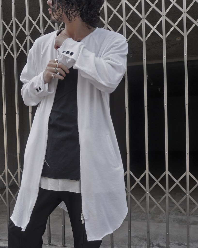 暗いトーンが多いワードローブの中で映えるアイテムとして、多大な影響をもたらすかとおもいます。あえての白はそこから。