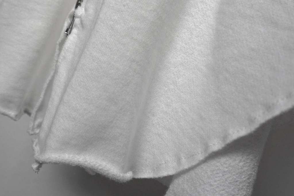 スウェットではありますが、カットソーアイテムに用いることが出来るくらい薄手。インナー、あるいはアウターを重ねてもストレスになりません。ある意味カーディガン感覚に近いです。