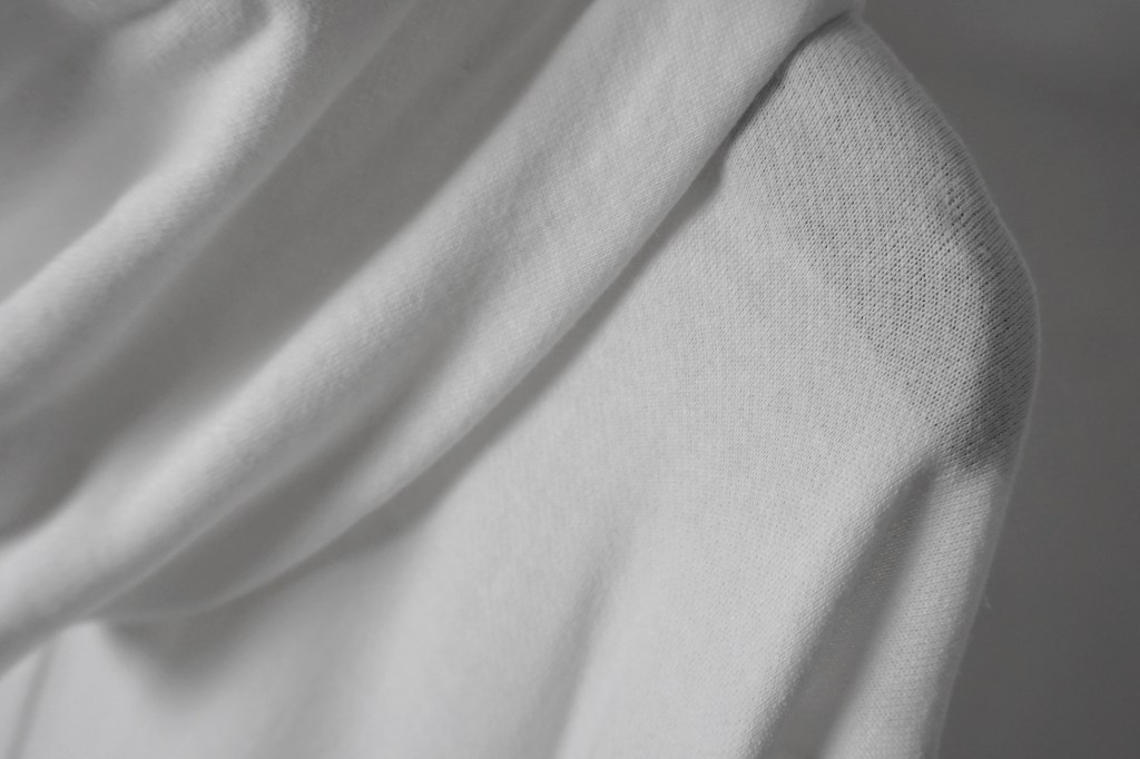 写真では伝わりづらいですが、ガーゼ調だけあってかなり柔らか。だからこそ、自然なドレープが生まれます。