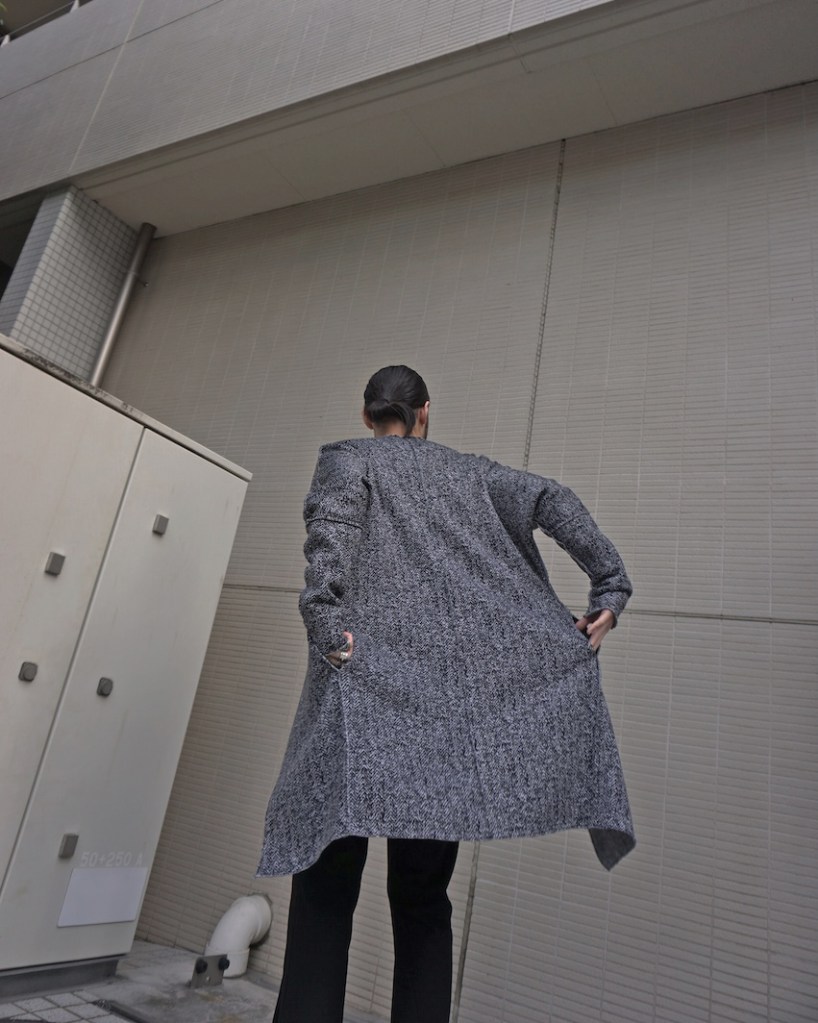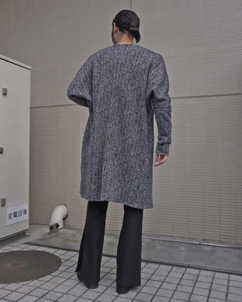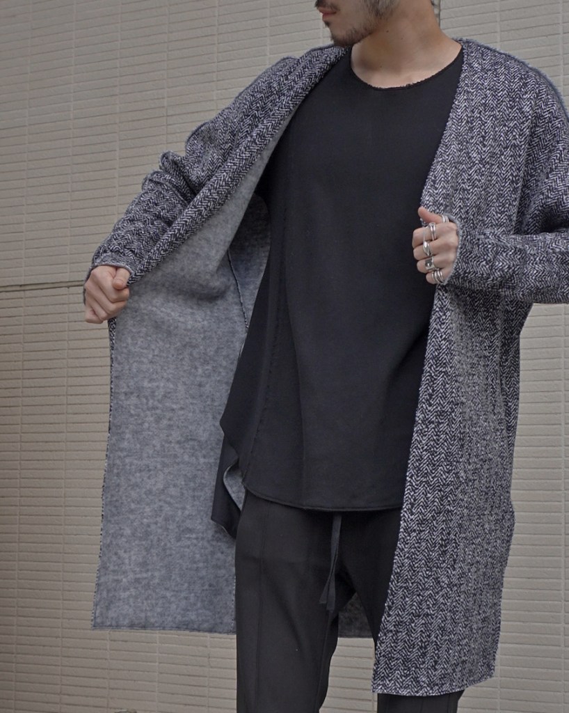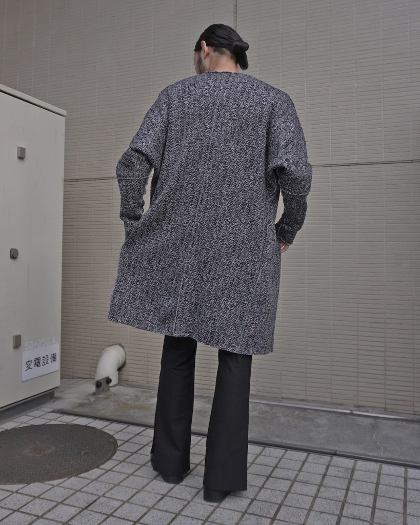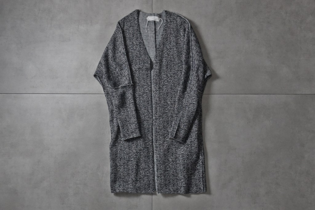 この贅沢な生地をいかに調理するか。素材が高級食材のようなものですし余計な味付けはいらないと判断しました。引き算でたどり着くミニマルなカーディガン。