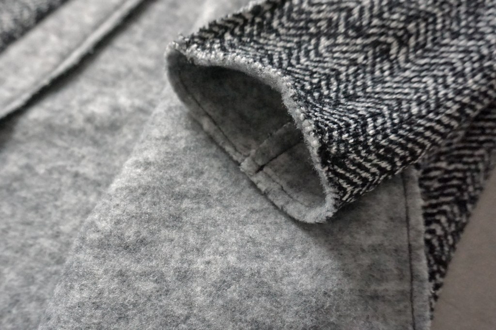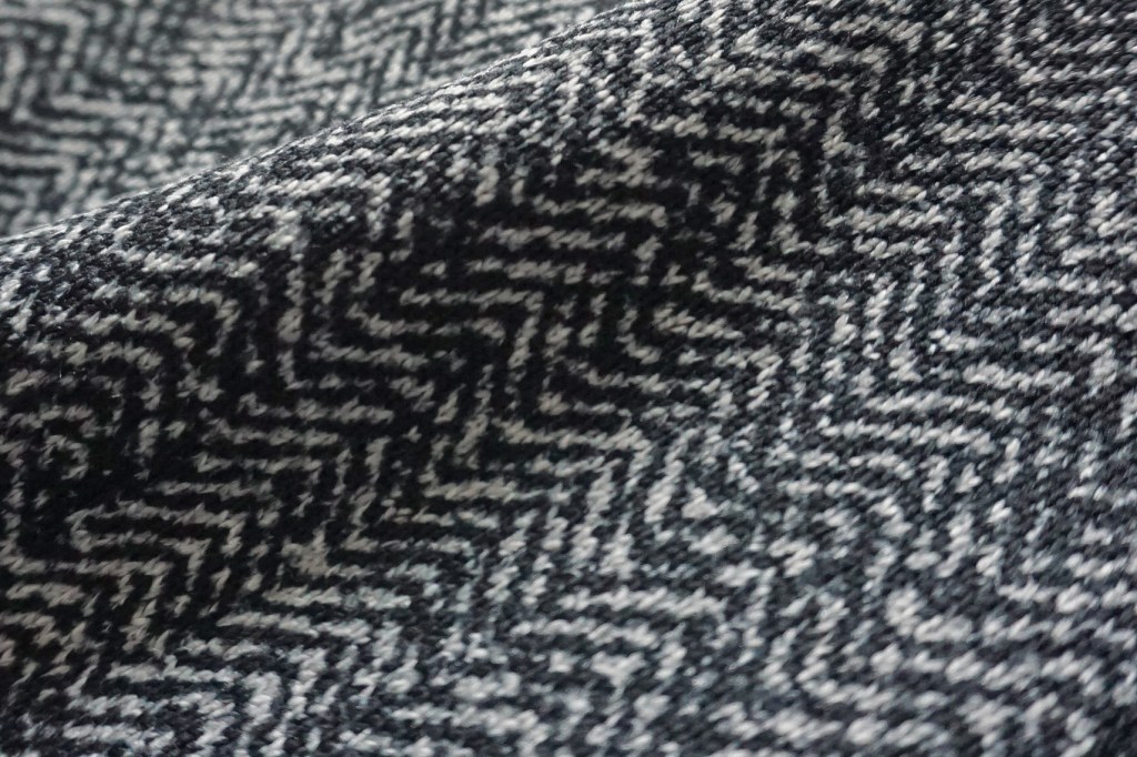 基布に用いたスラブ糸や杢糸とツイード柄が組み合わさったことによってこのリアルな奥行きある柄を表現しています。それにこういった素材、かゆいものが多いですよね。今作は肌触りも良く裏起毛させていてとにかく、とにかく暖かい。