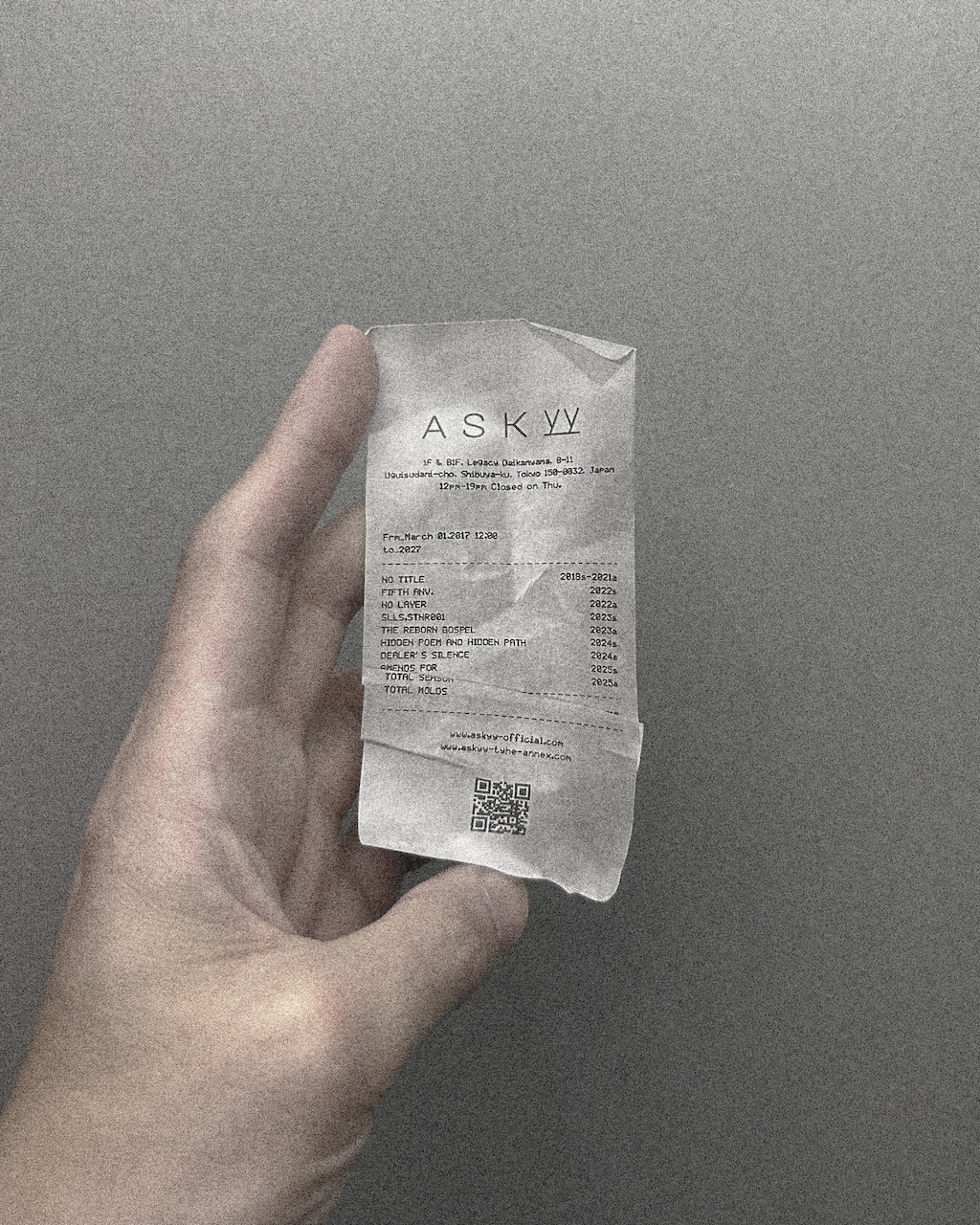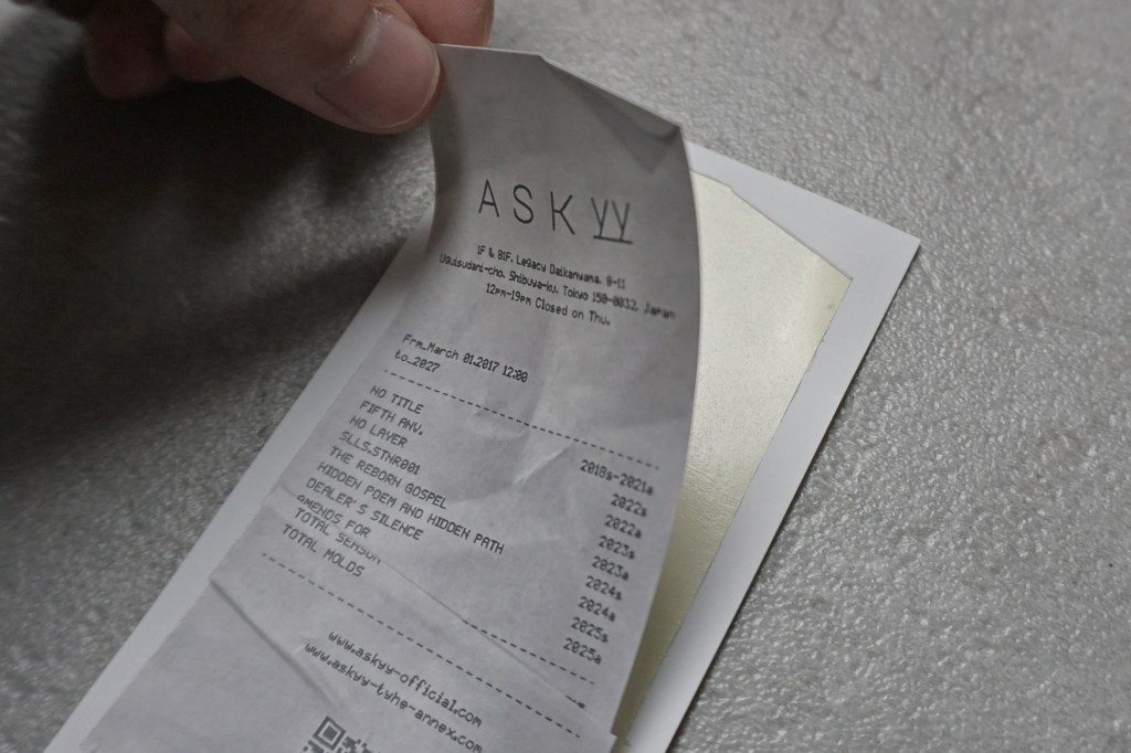 そういった「完璧でない日常」がレシートっていうぺらぺらの1枚に断片として刻まれているってなんかエモおおって思います。レシートの内容もその折れ曲がってくしゃくしゃなシワも、大袈裟にいうなればそれは服として表すことと実は何も変わらないのかもしれません。